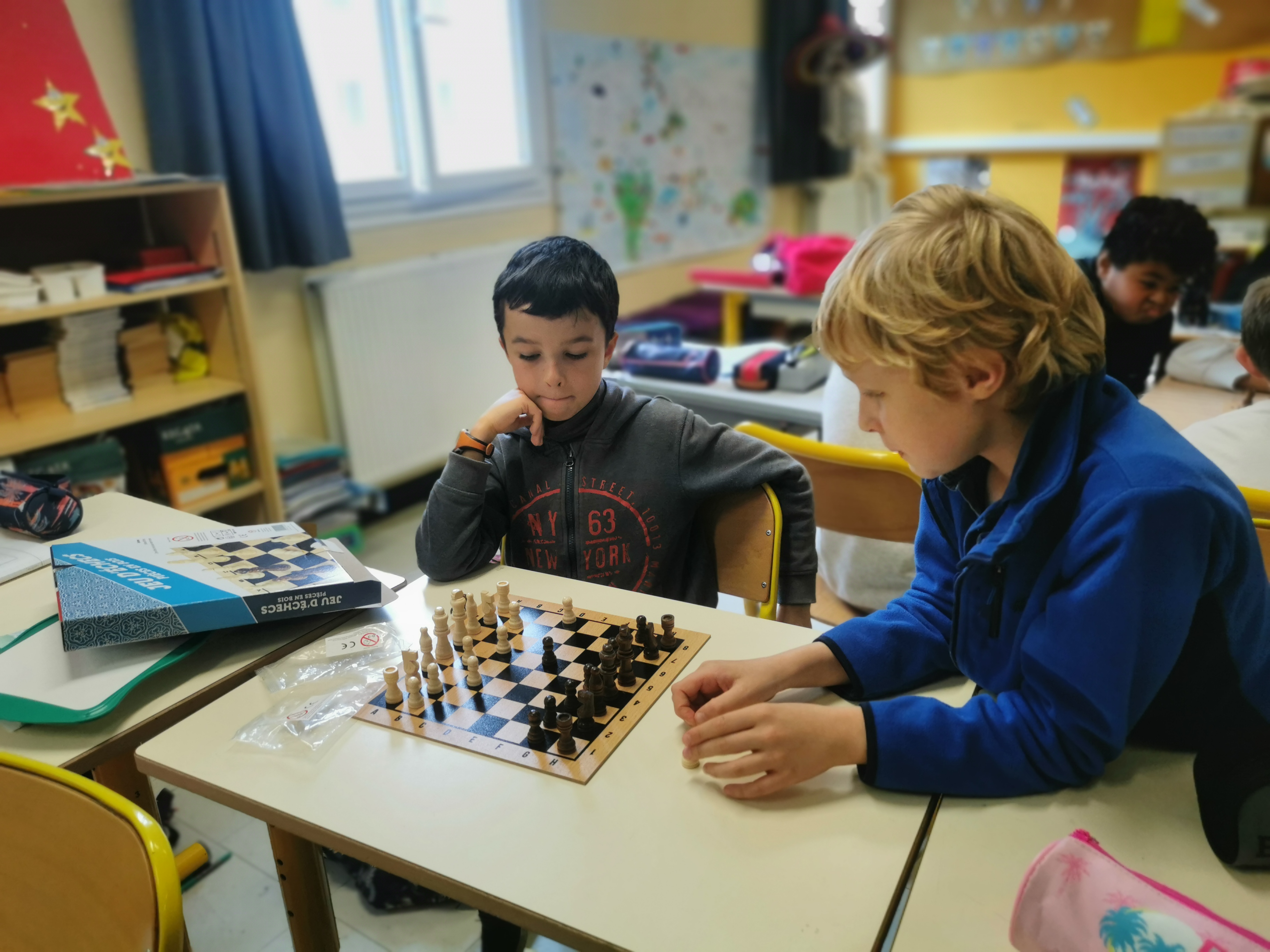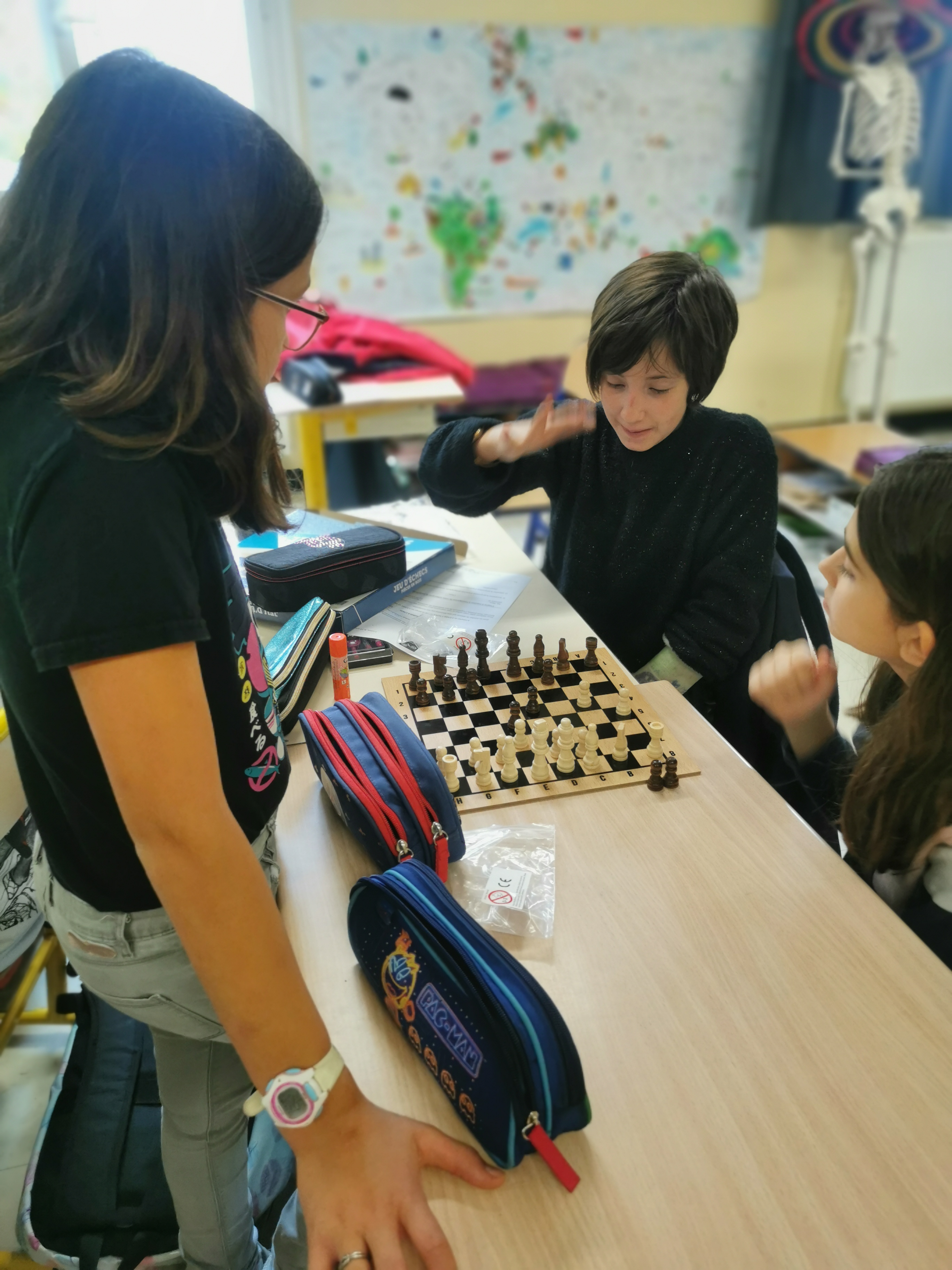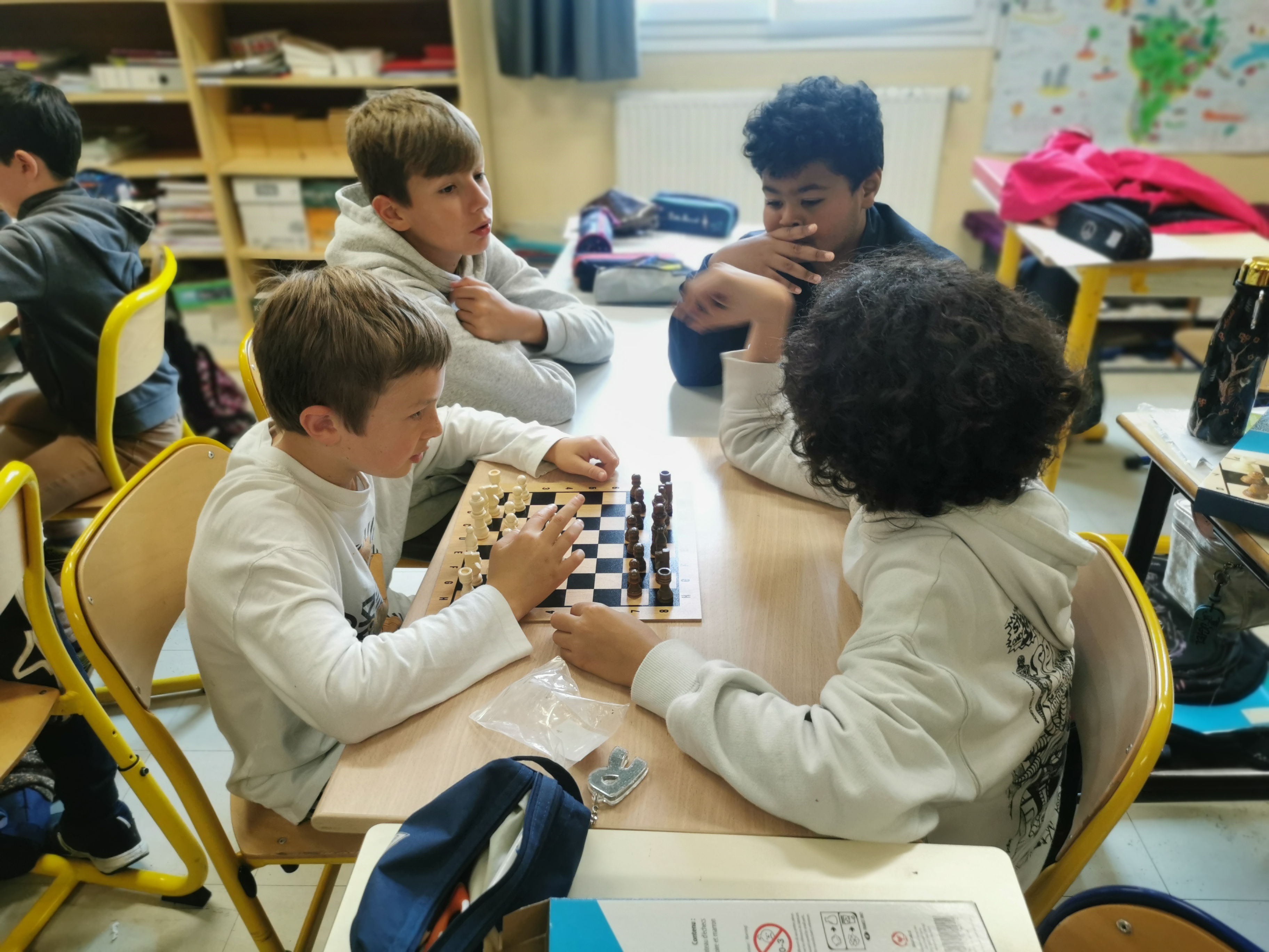 A l’initiative d’un élève de CM2, un club d’échecs a vu le jour cette année. Tous les lundis, les élèves se retrouvent de 13h à 13h30 pour quelques parties. C’est aussi l’occasion pour certains d’apprendre à jouer aux échecs.