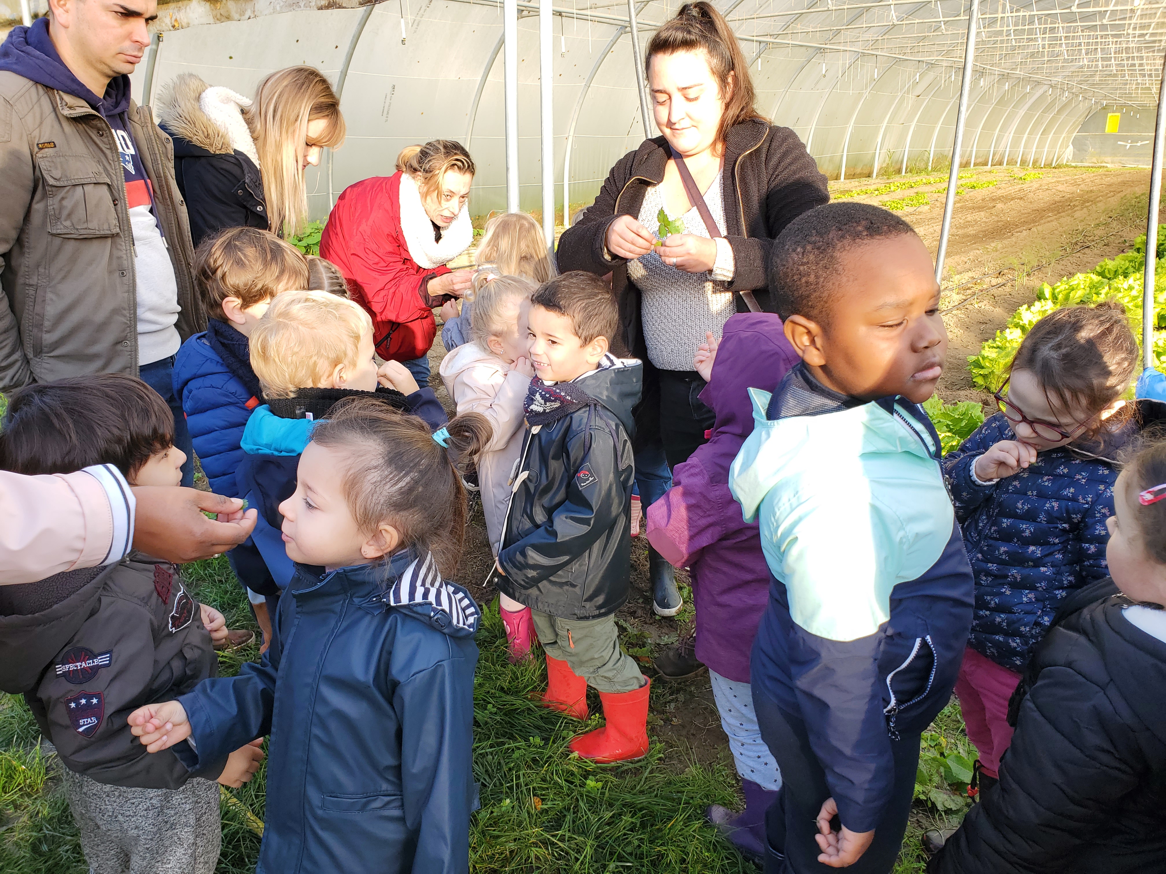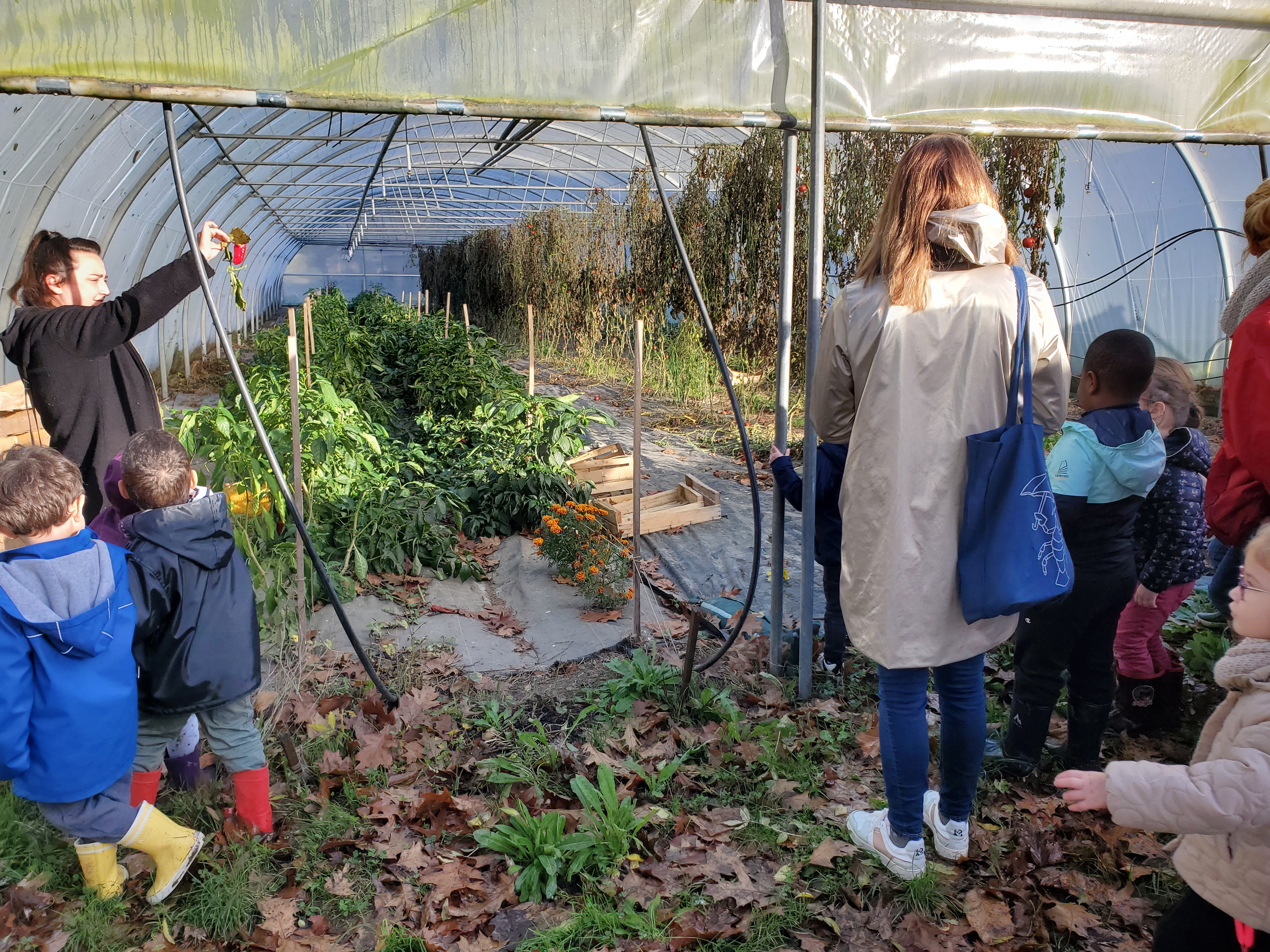 Au programme : visite des serres, découverte de plusieurs légumes : carottes, salades, choux, poireaux, poivrons, piments, betteraves, tomates…