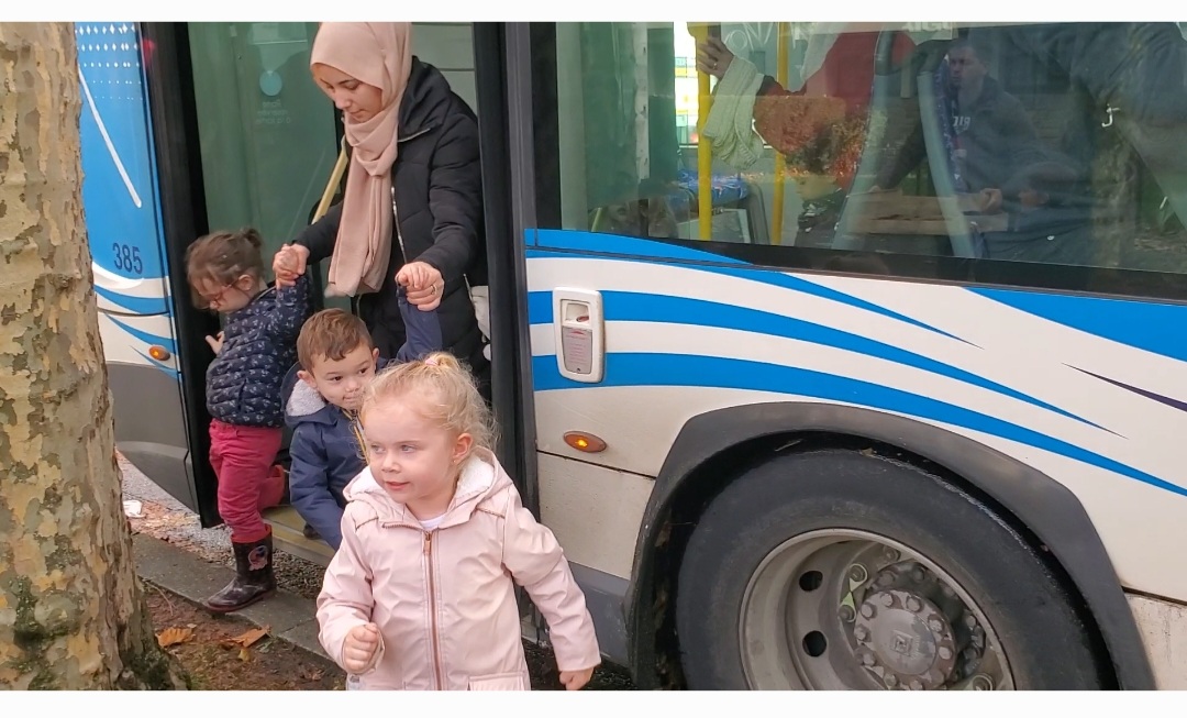 Pour se rendre à la ferme, nous avons pris le bus de ville. Plusieurs parents nous ont accompagnés pour notre sortie.