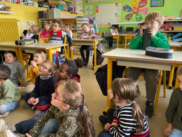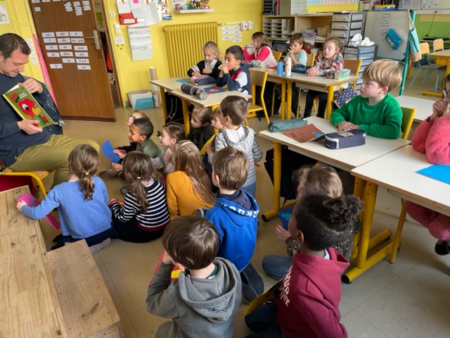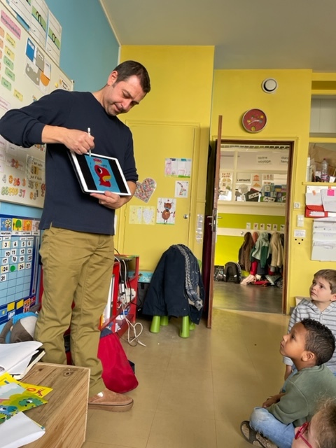 Dans le cadre du salon du livre jeunesse organisé à Lorient , la classe de GS-CP a eu la chance de recevoir en classe la visite de Thierry BEDOUET .