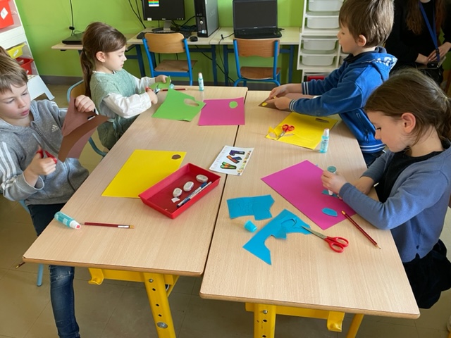 Les enfants ont ensuite participé à un atelier créatif : chacun a réalisé son diplodocus (découpage/collage).