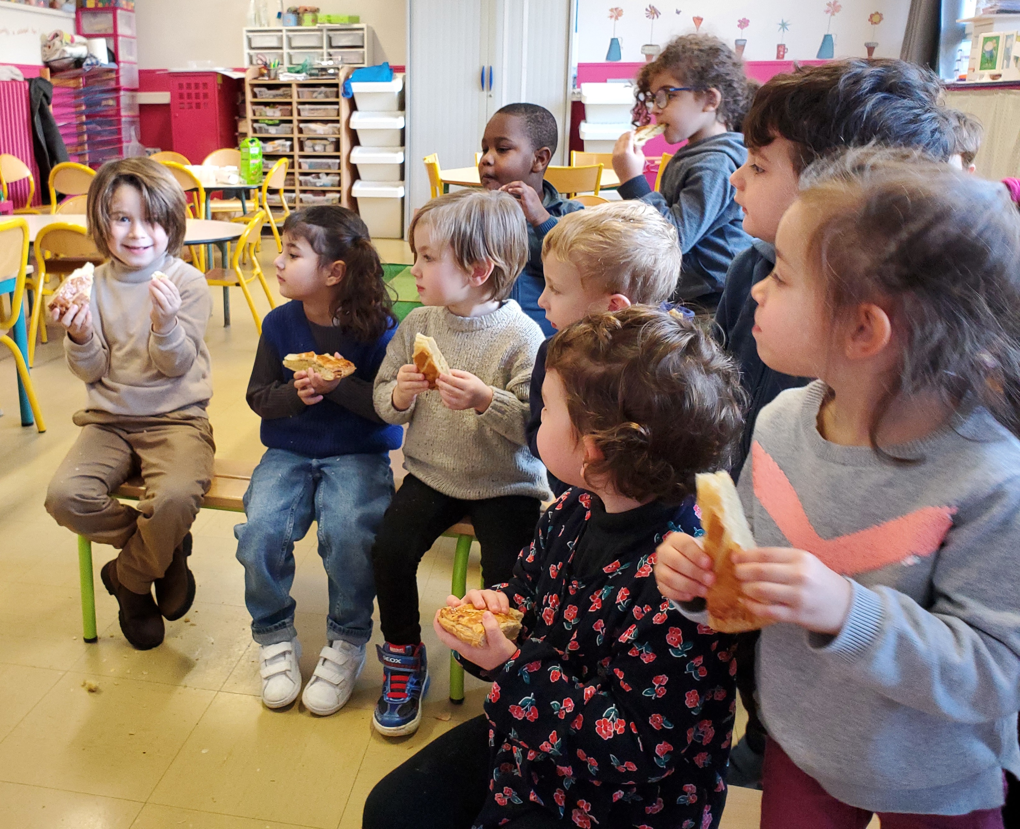 Cette semaine les enfants de PS/MS ont partagé la galette des rois fabriquée en classe. Ils ont aussi confectionné des couronnes des rois à la peinture et au crayon de couleur. Chants et danses sur le thème de la galette ont rythmé la semaine.