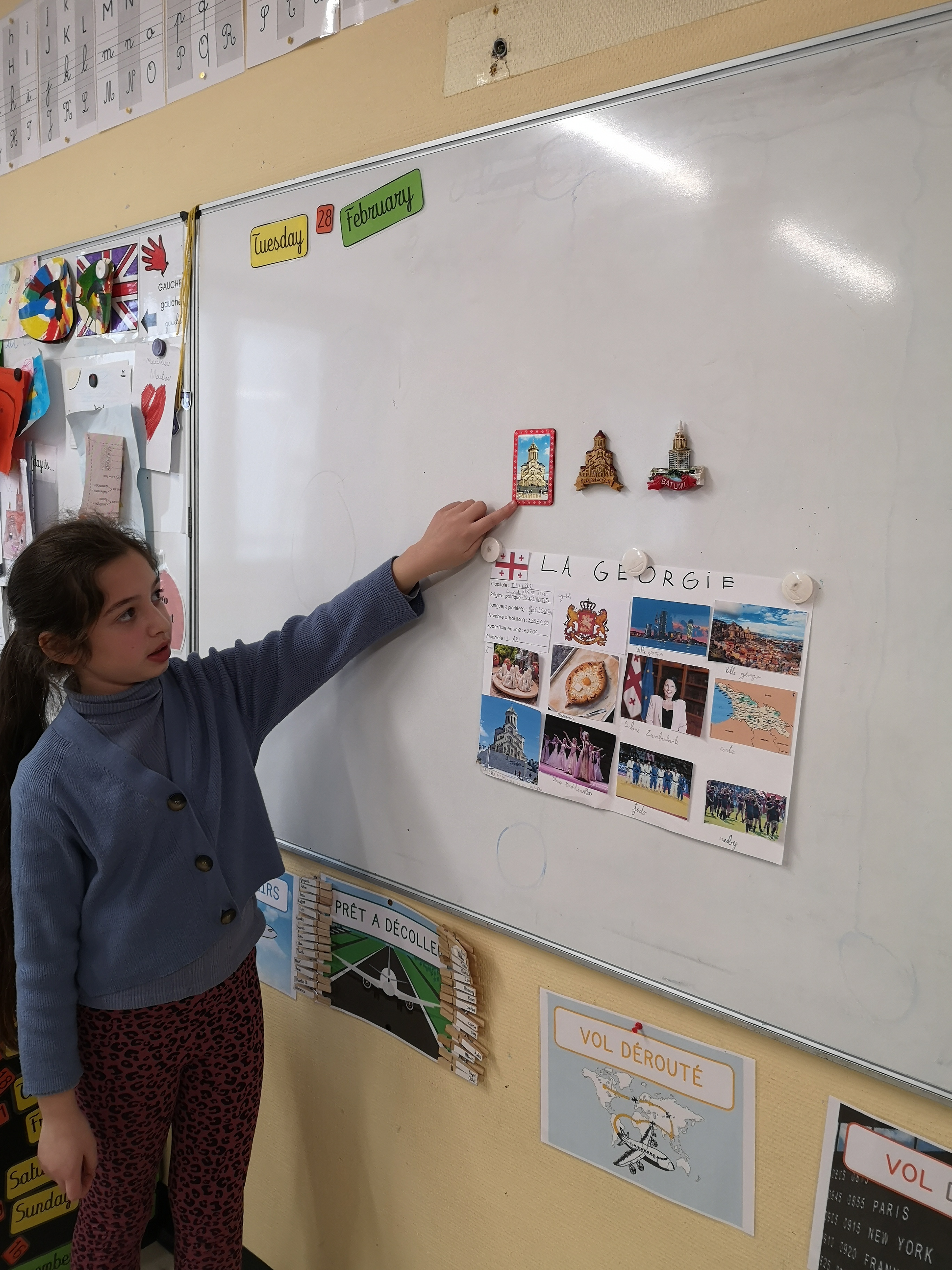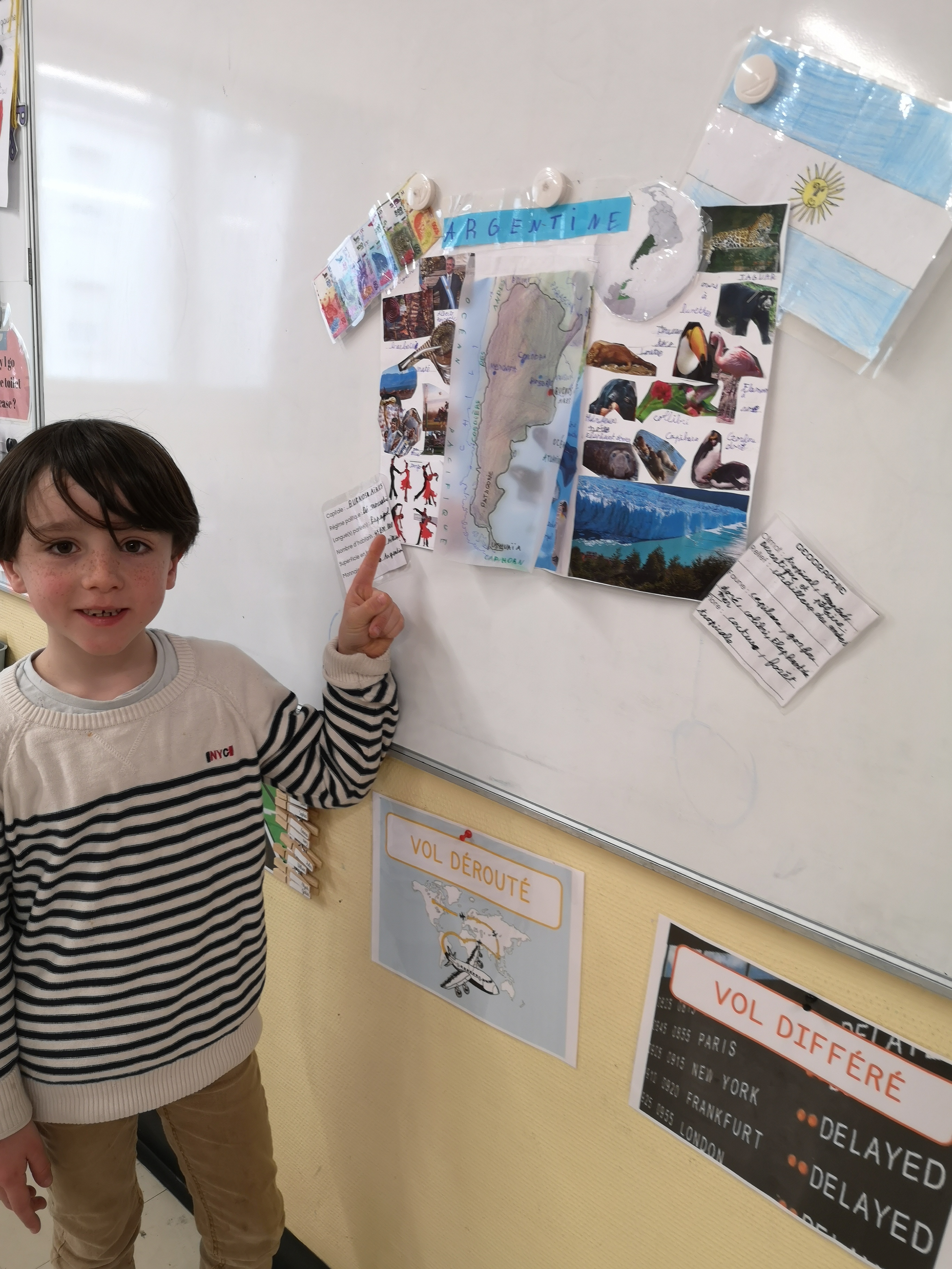 Les élèves, de la classe de ce1 ce2, ont continué à travailler sur notre projet d’année : Le tour du monde.