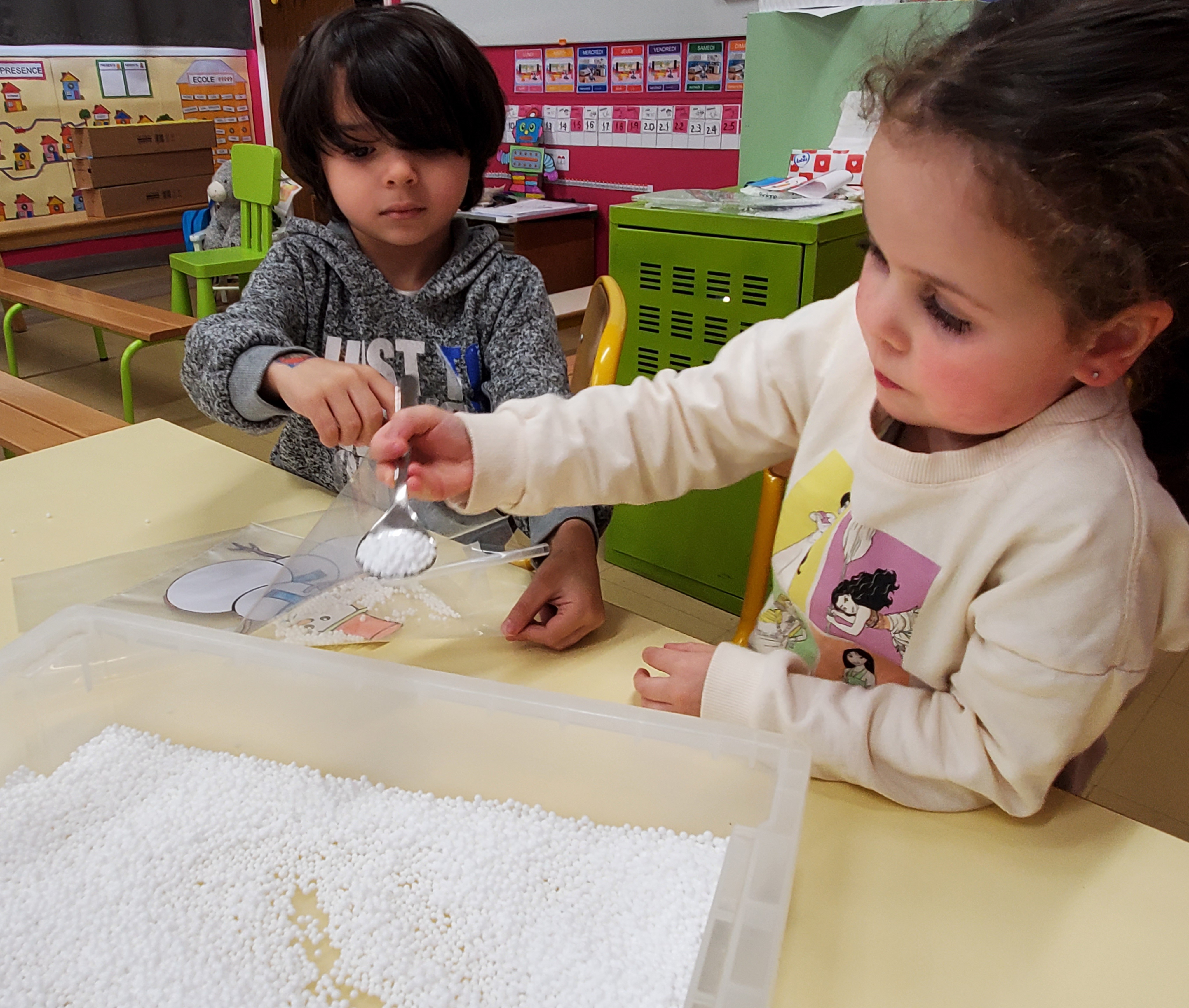 Ensuite, en soufflant dans le sac au travers d’une paille, ils ont pu voir leur bonhomme pris dans une tempête de neige !