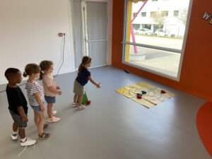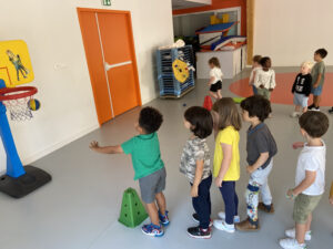 Cette année notre projet de classe abordera les J.O, à travers différents domaines, notamment en sport. Pour cette première période, nous travaillons le LANCER: lancer loin, lancer avec précisions à l’aide de différents matériels.