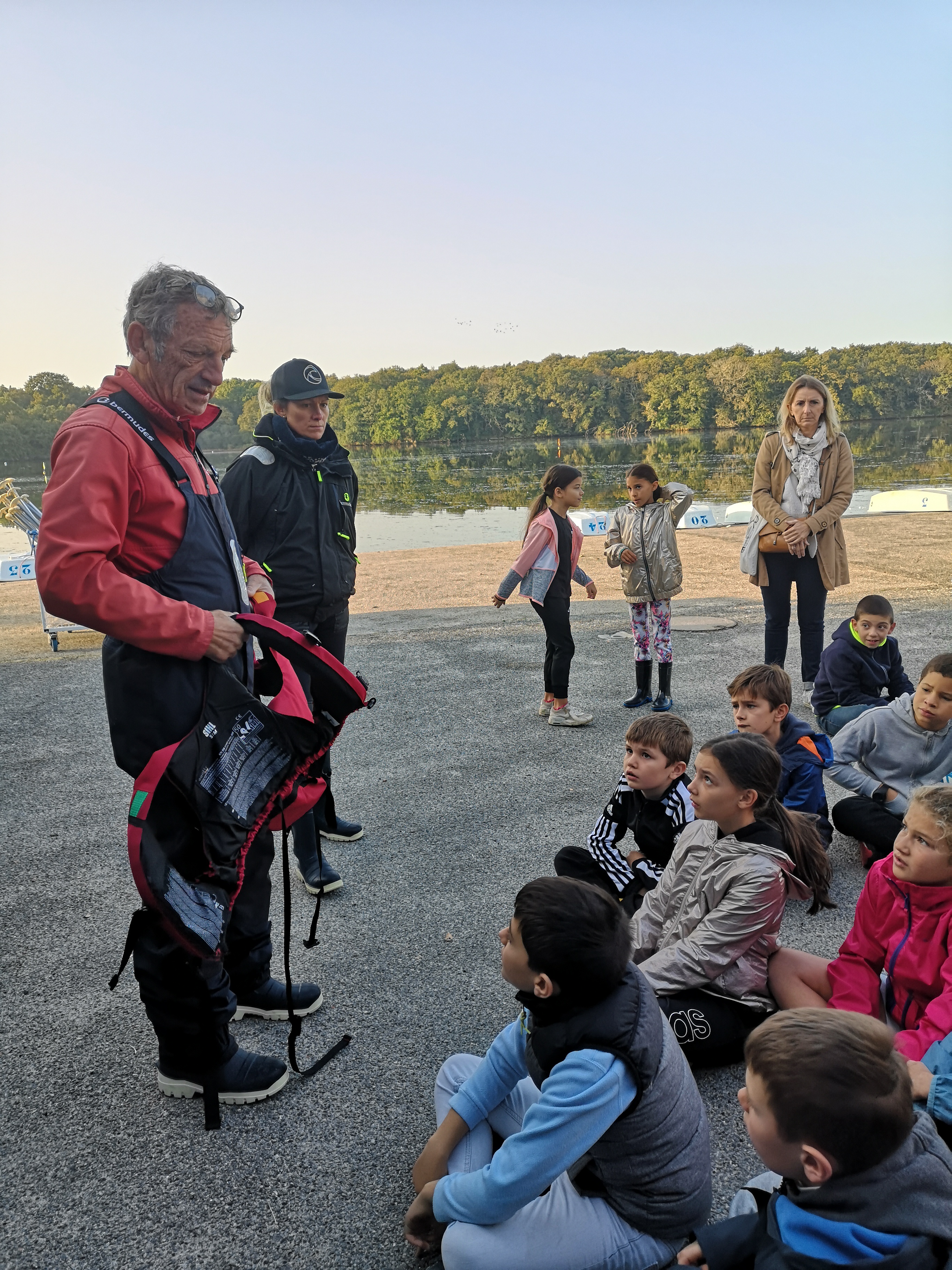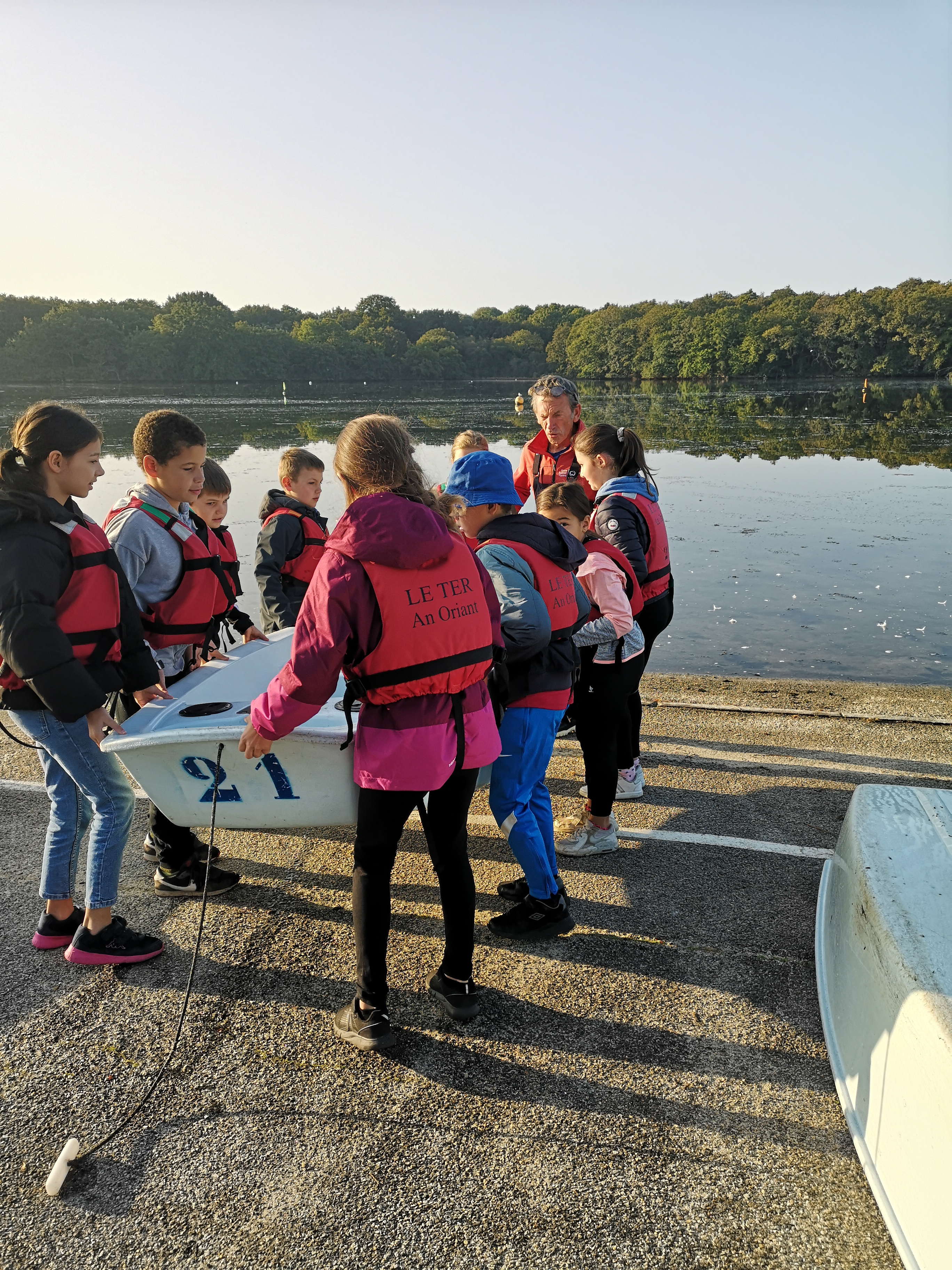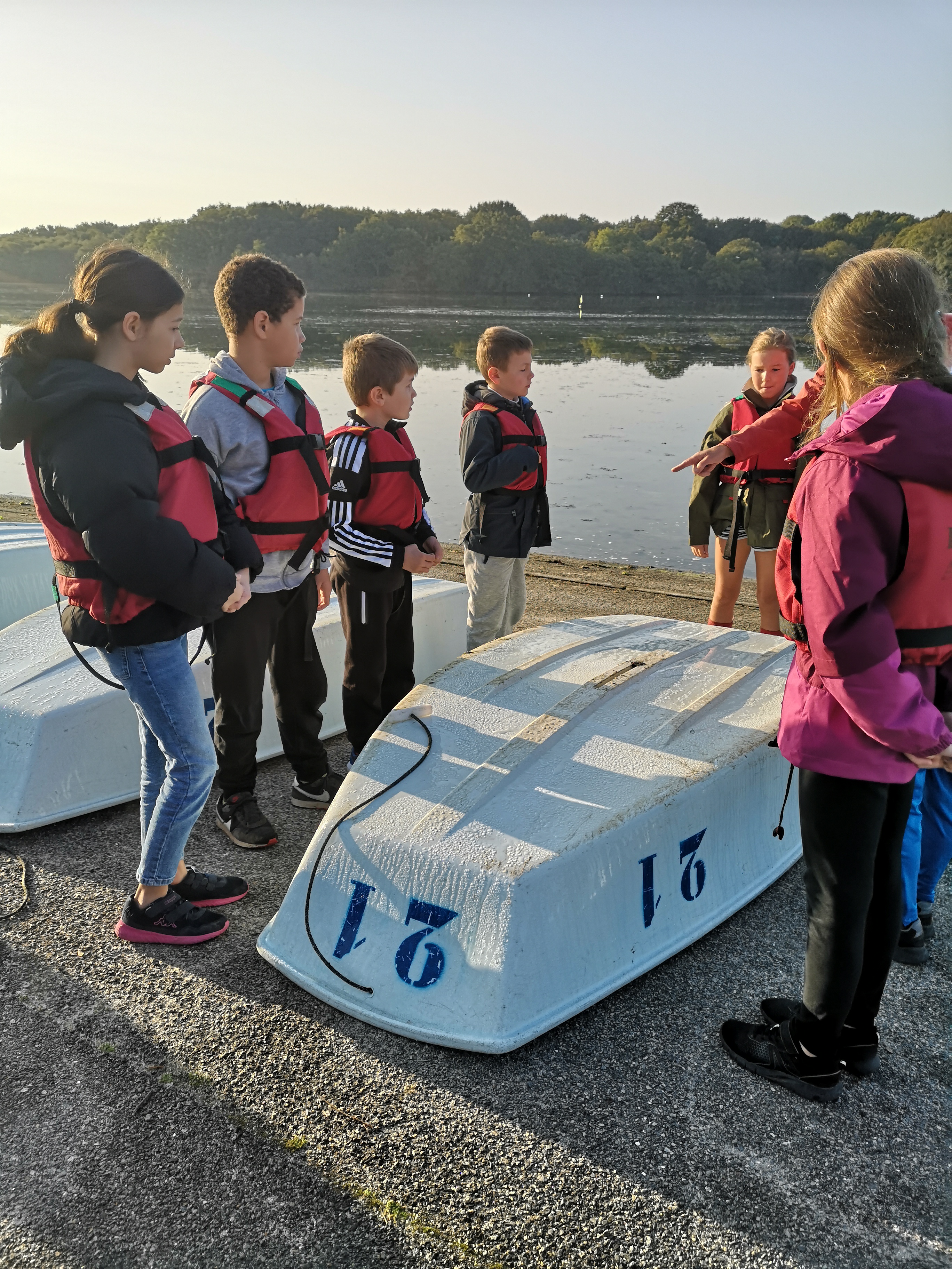 Ce vendredi 6 octobre, tous les CM1 de l’école ont participé à la première séance de voile à l’étang du Ter.Après avoir mis les gilets de sauvetage, direction la salle de cours pour expliquer les fondamentaux de la navigation et le positionnement sur le bateau.