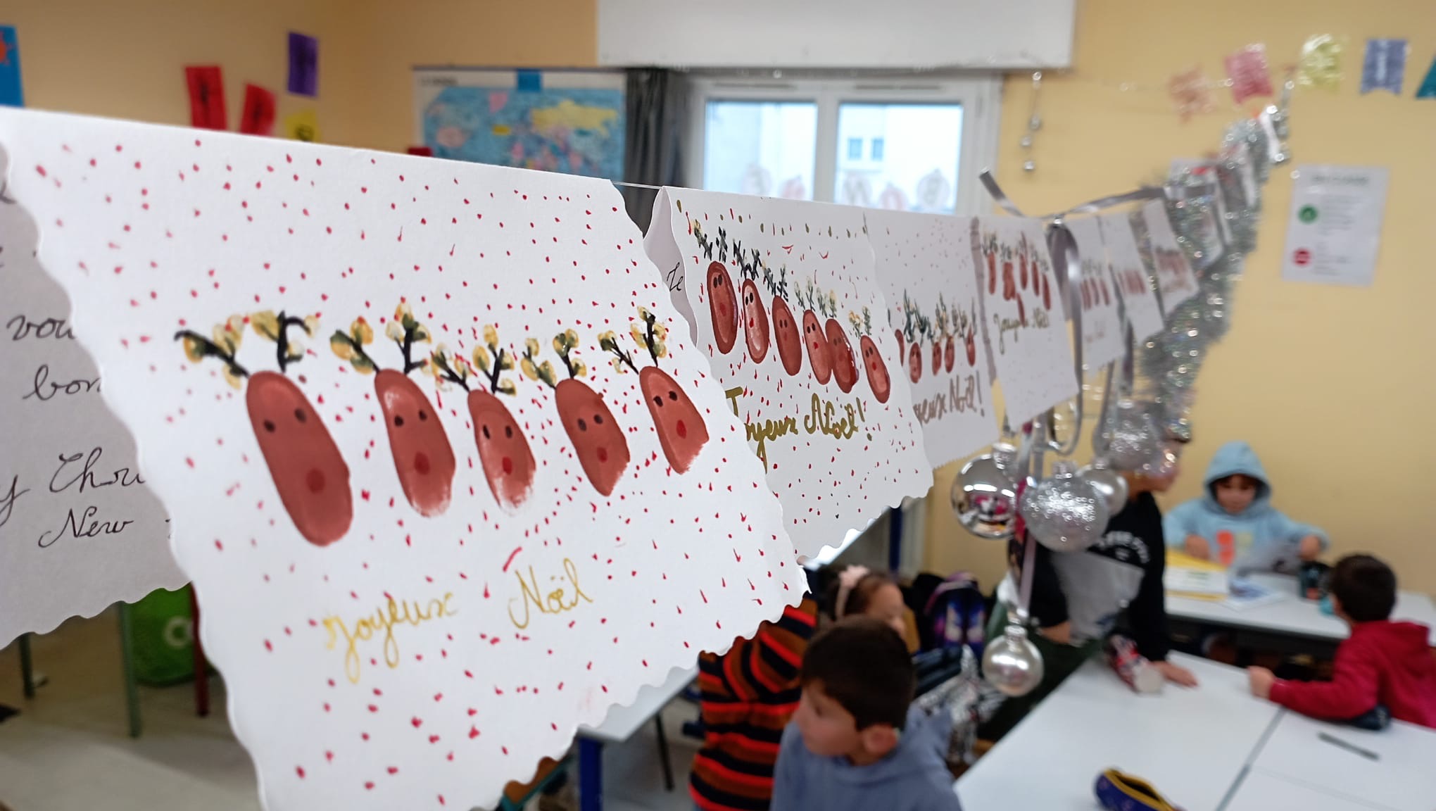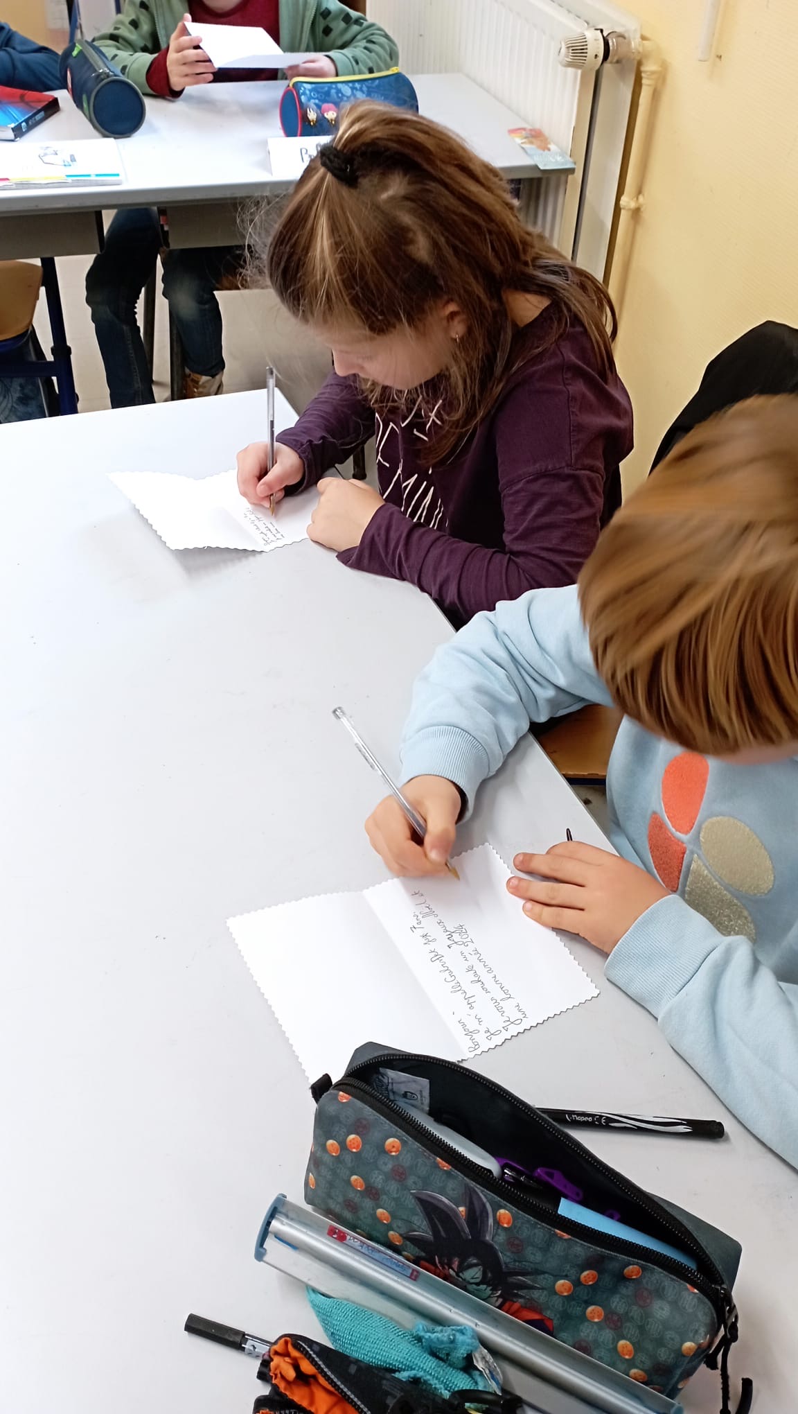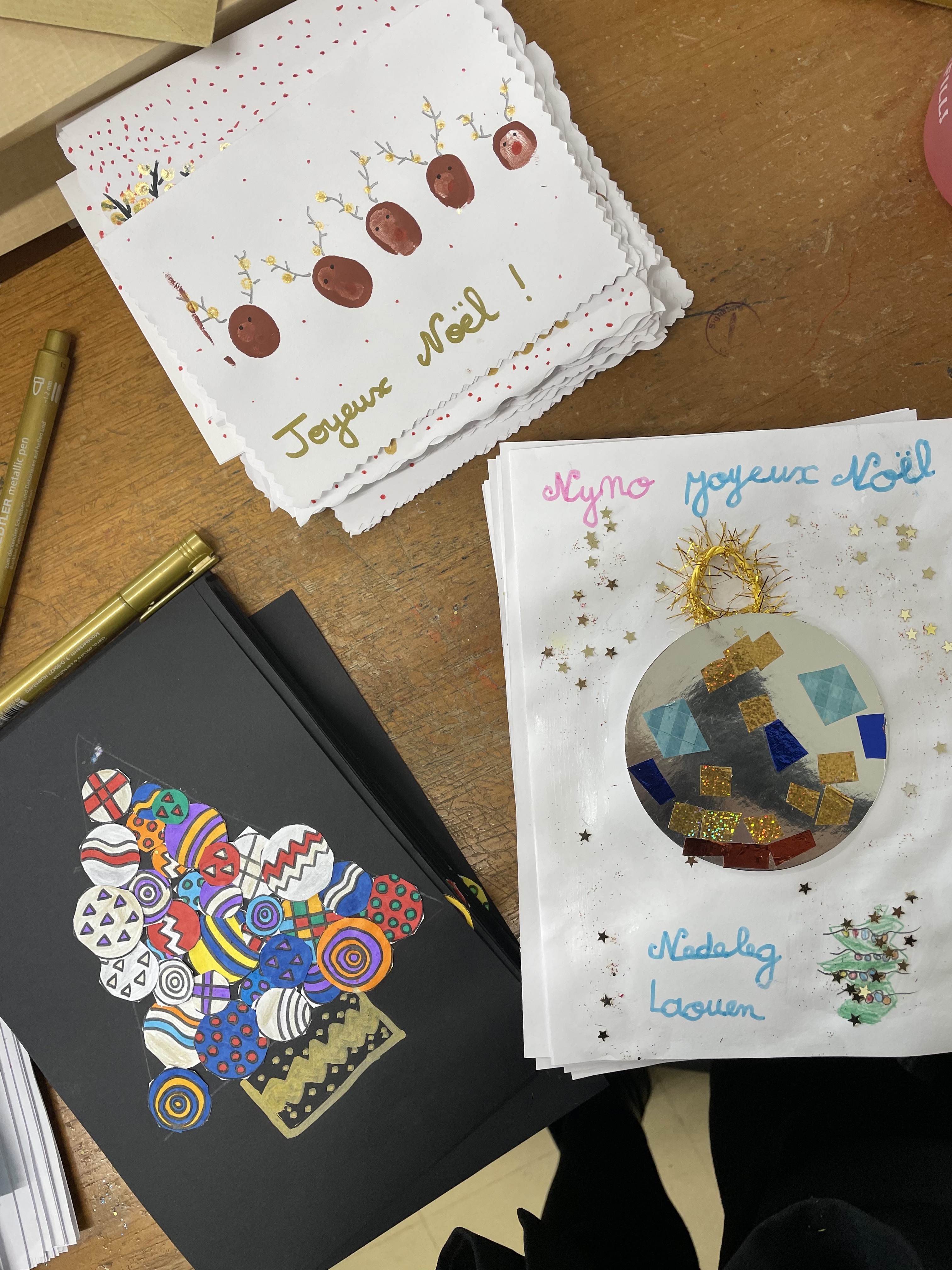 Les élèves ont créés des cartes de vœux à envoyer à une école à Athènes en Grèce et ils recevront aussi des cartes en retour.
