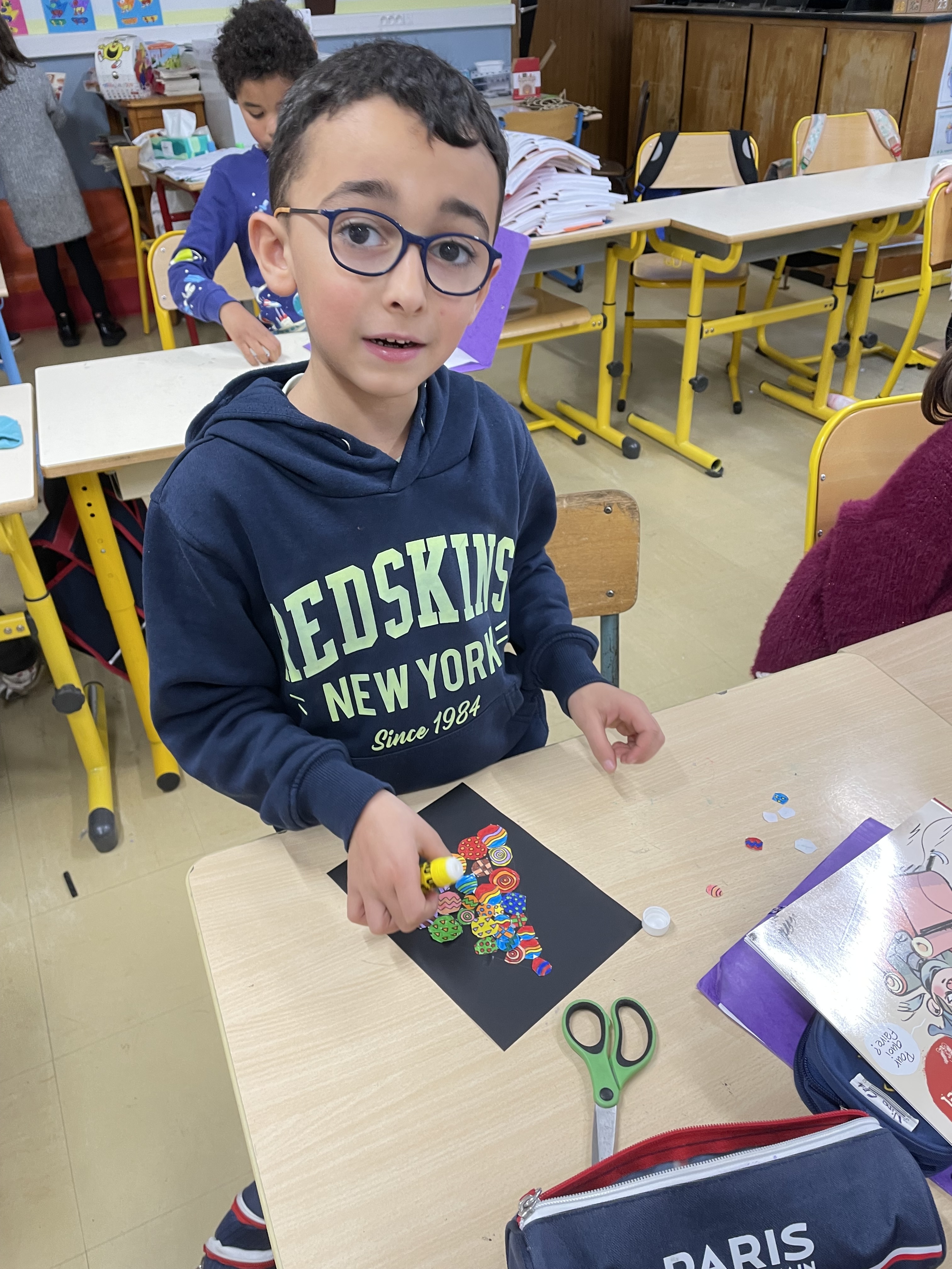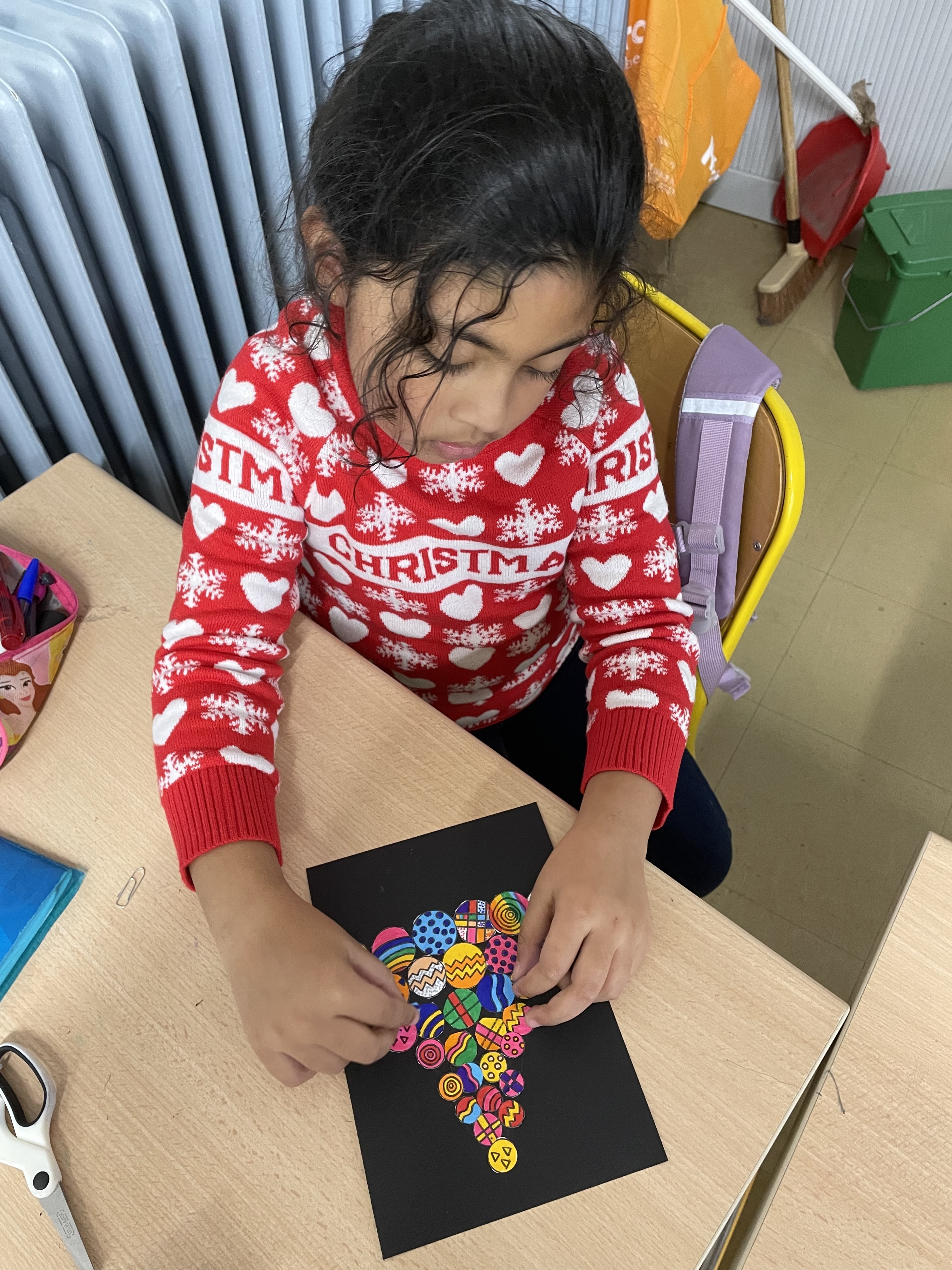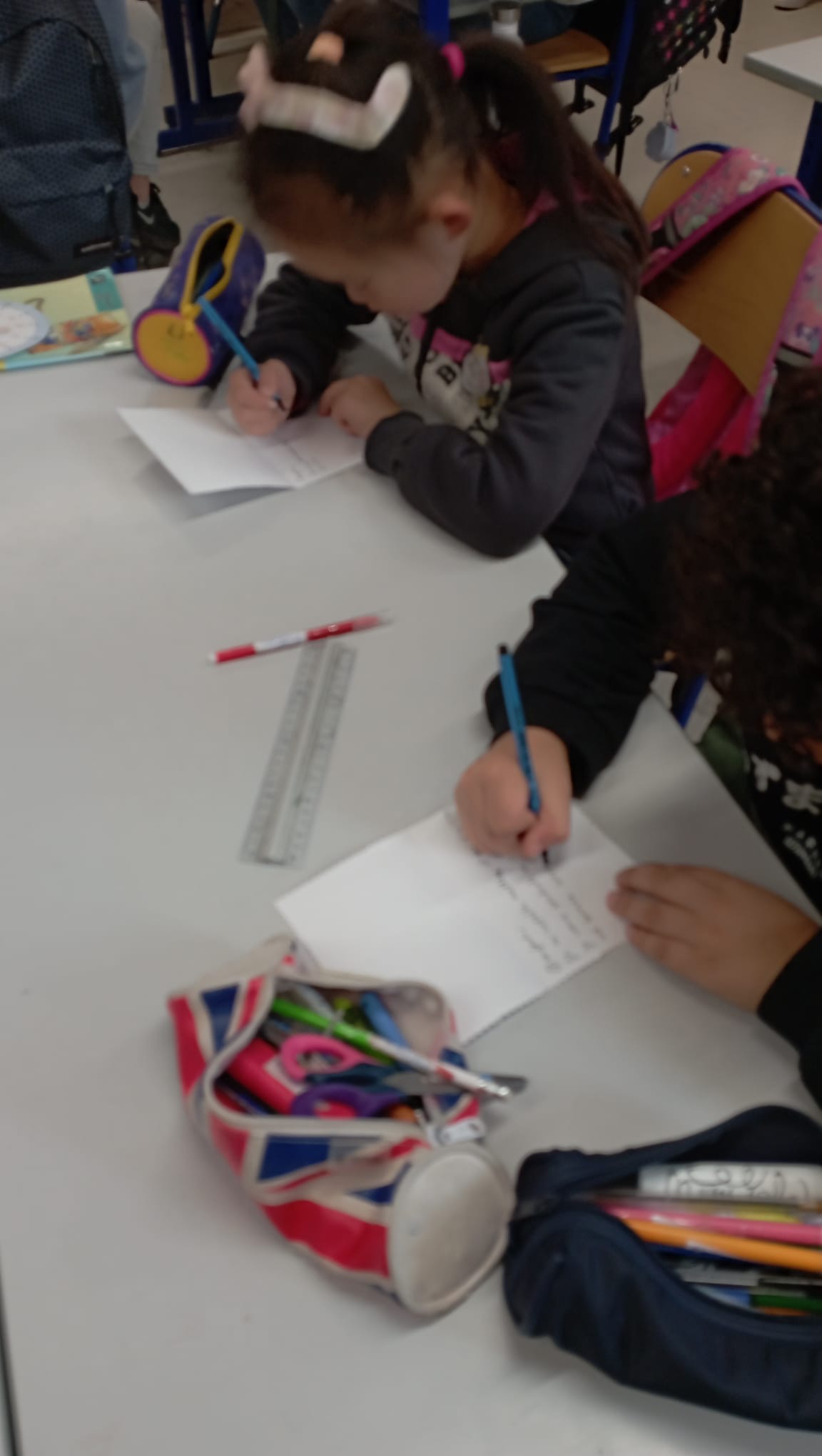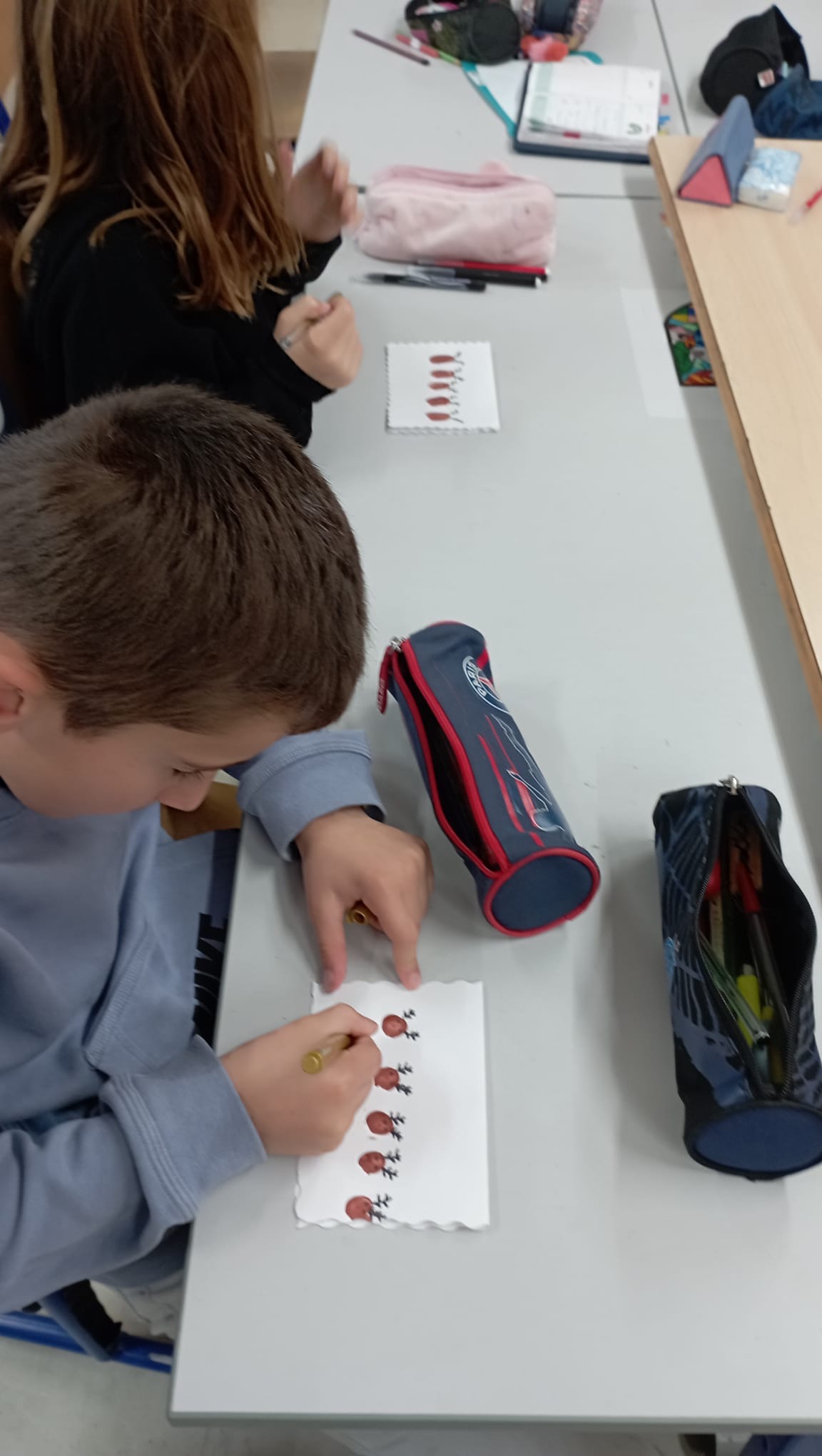 Les élèves ont créés des cartes de vœux à envoyer à une école à Athènes en Grèce et ils recevront aussi des cartes en retour.