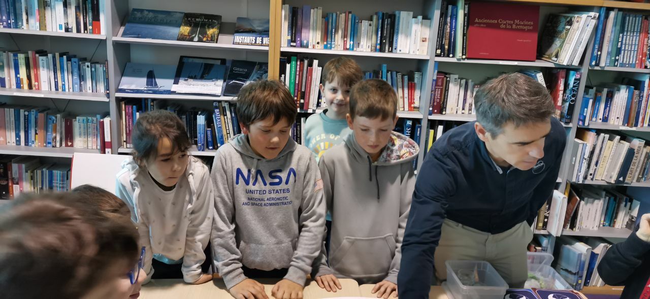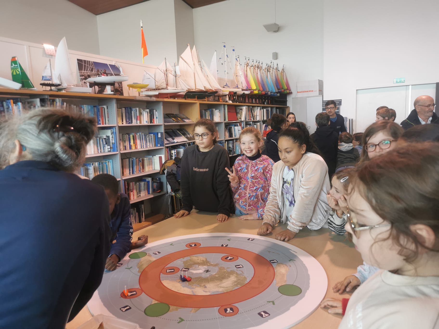Les élèves ont pu, dans un premier temps, échanger avec des skippers (Clarisse Crémer pour les cycles 3 et Kojiro Shiraishi pour les cycles 2) ayant participé à la course « Retour à la base » ralliant Fort-de-France en Martinique à Lorient.