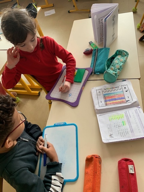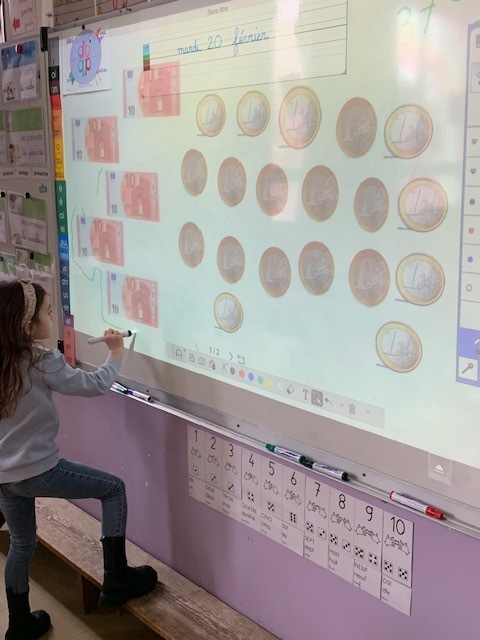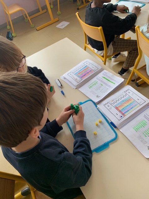 Les élèves peuvent donc visualiser les situations proposées. Par exemple, en mathématiques ( calcul, numération, résolution de problèmes …) , ils utilisent régulièrement des cubes unités, des barres de dizaines, des pièces de monnaie ou des billets pour calculer ou encore composer/décomposer des nombres.
