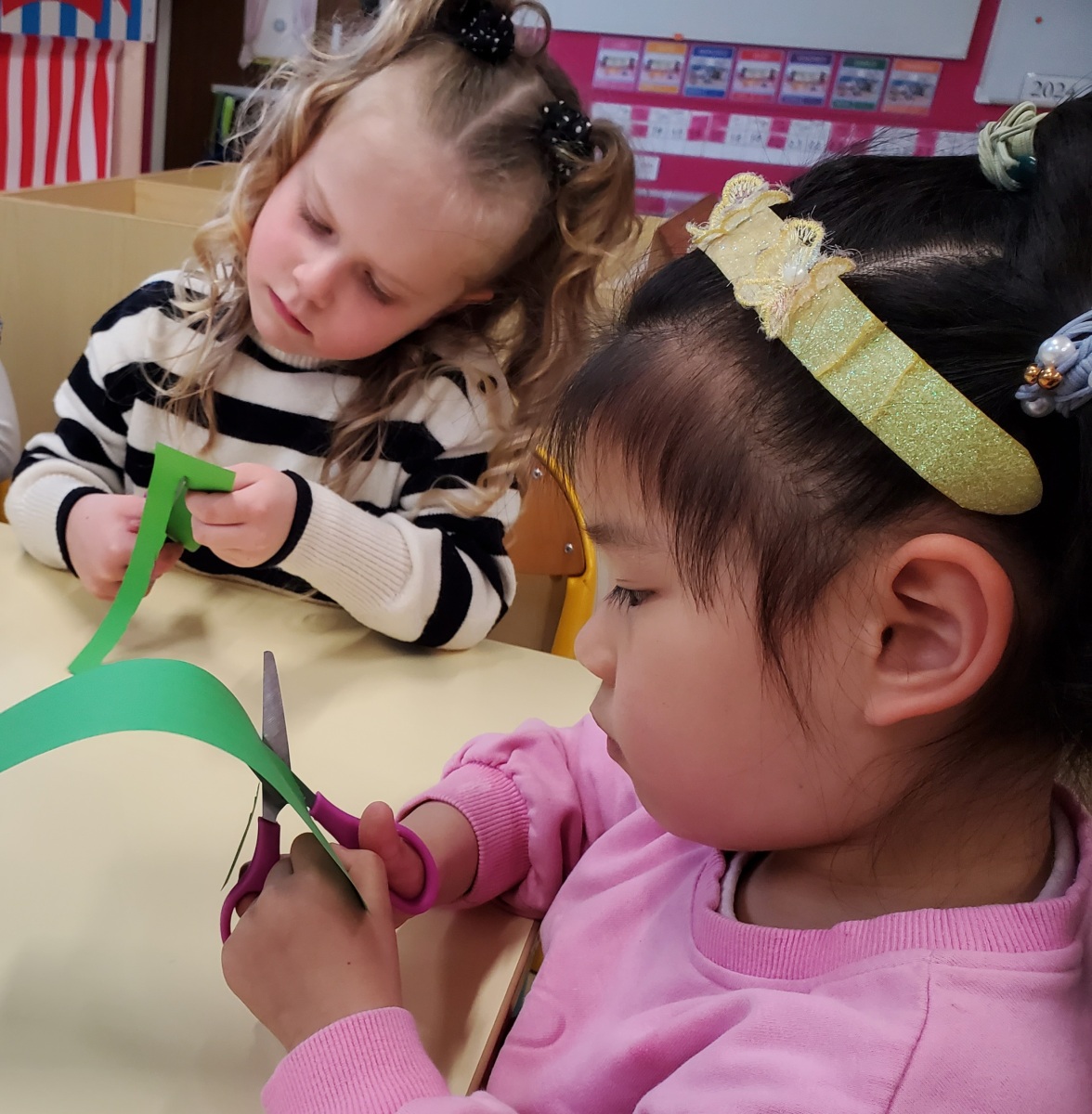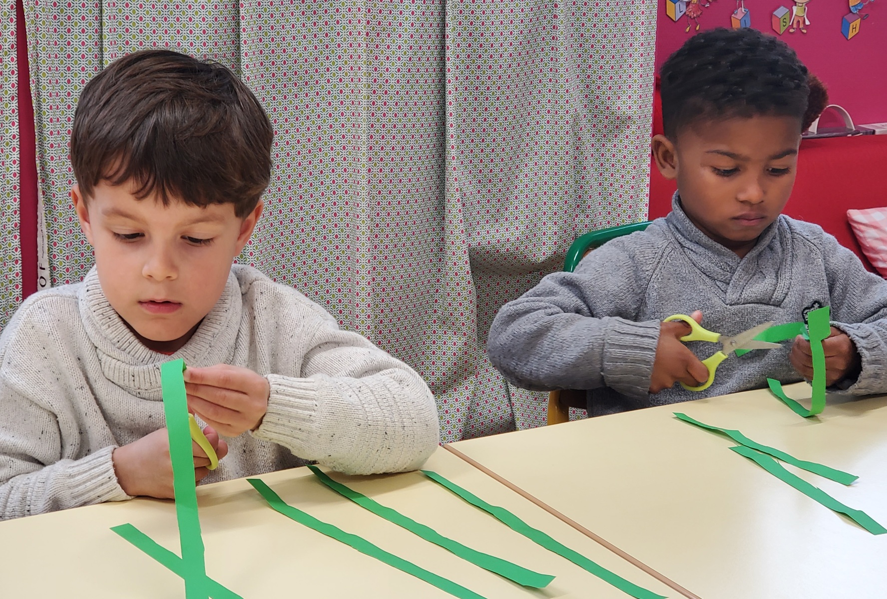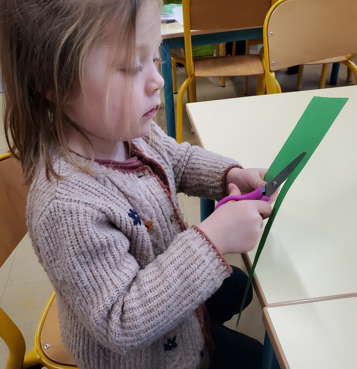 Les enfants de MS ont découpé des bandes de papier pour créer les tiges des fleurs.