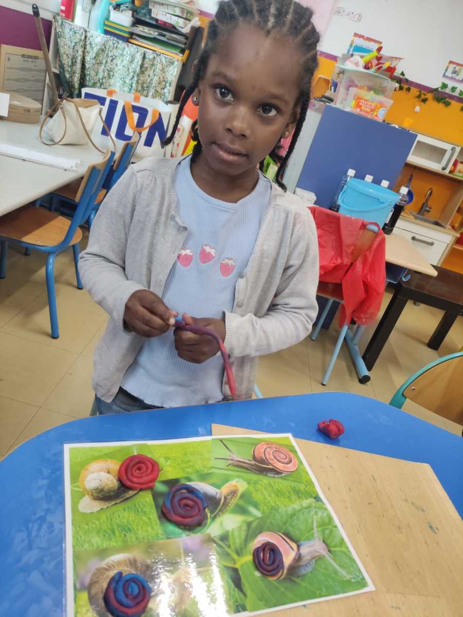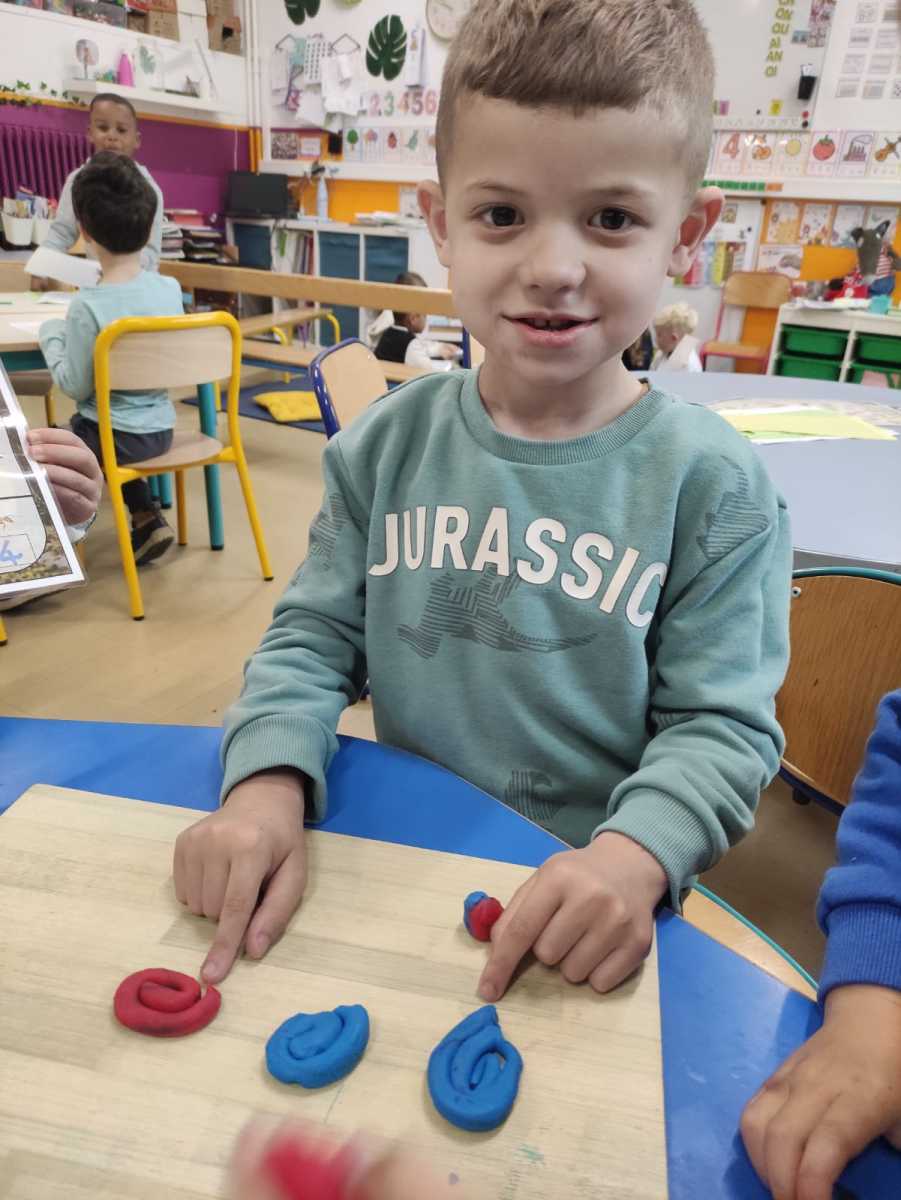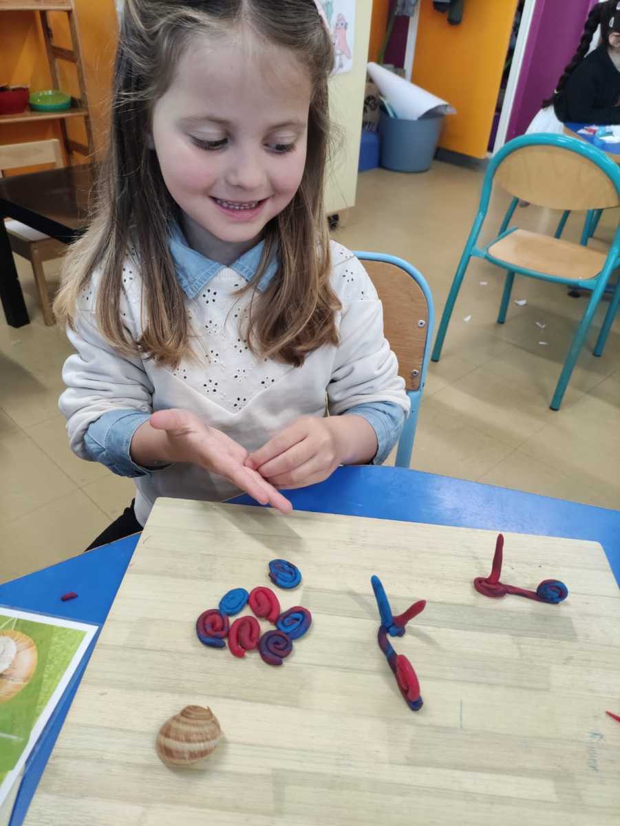 Avant de tracer comme des grands, nous manipulons et découvrons toutes sortes de spirales avec différents matériels (images, pâte à modeler, petites pierres, fleurs, papillons…)