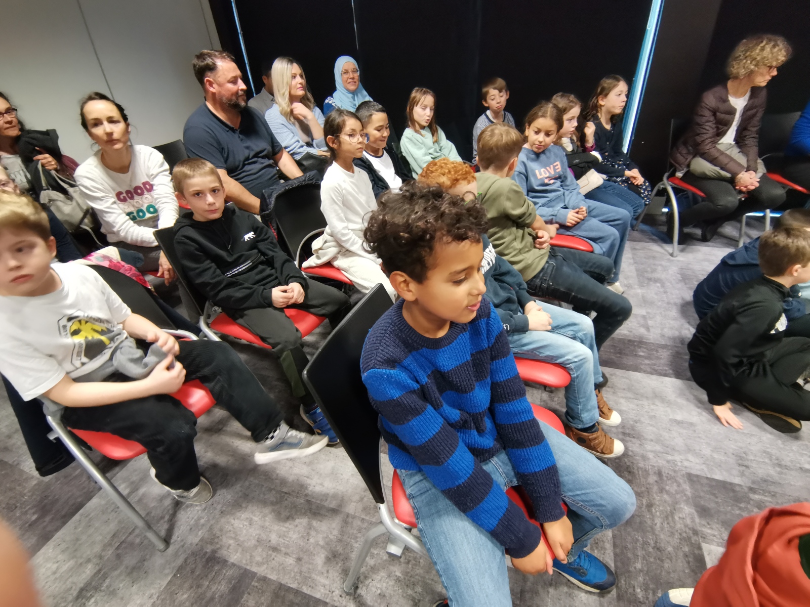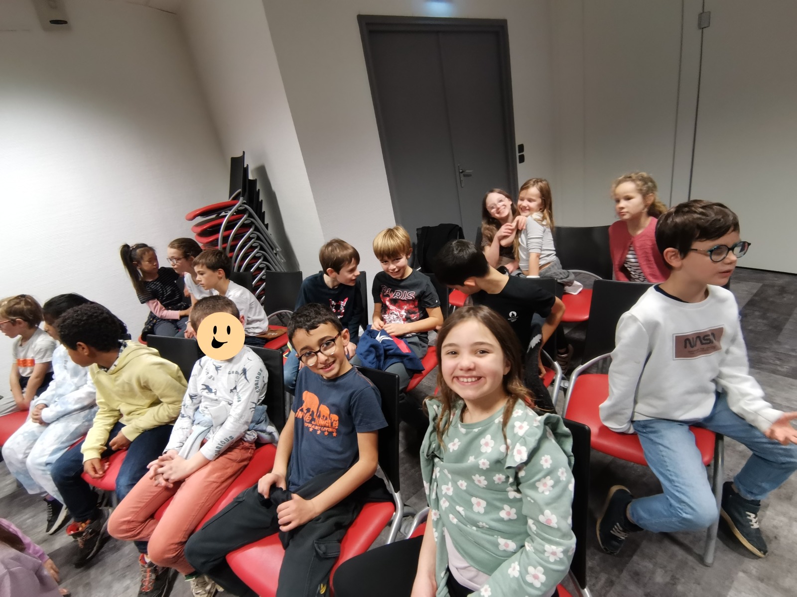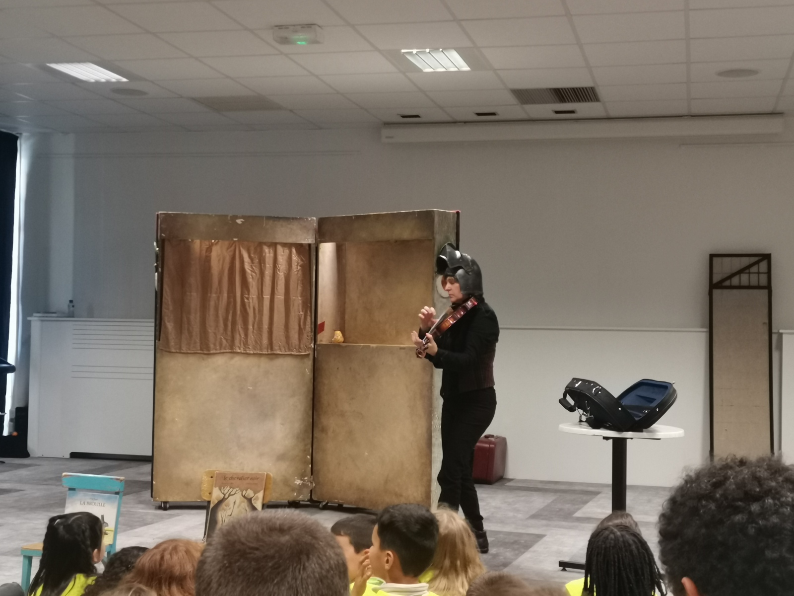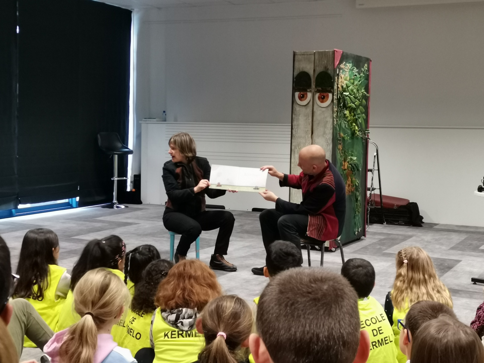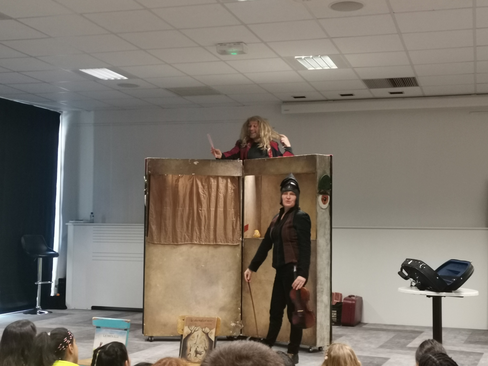 Les élèves de CE2 ont assisté à un spectacle ce lundi au le salon du livre. Cette année, le thème du salon est le même que celui de l’école : Les Contes. Lors du spectacle Pop-up, ils ont découvert deux livres : « La brouille » de Claude BOUJON et « Le Chevalier noir » de Mickaël ESCOFFIER. Les comédiens ont tout d’abord lu à deux voix un livre puis ils l’ont interprété sous forme humoristique. Ils ont également essayé de piéger les enfants en changeant l’histoire. Ce spectacle a été très apprécié !