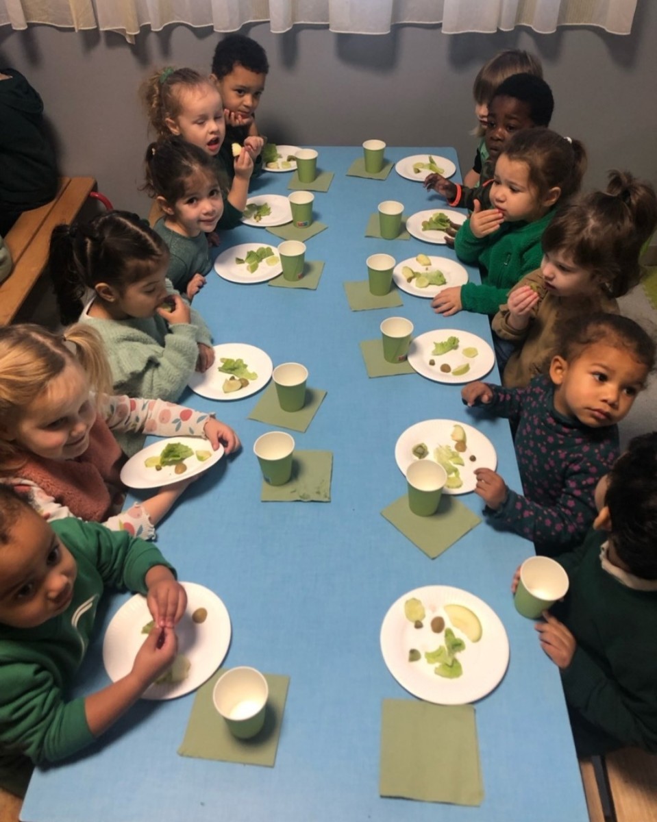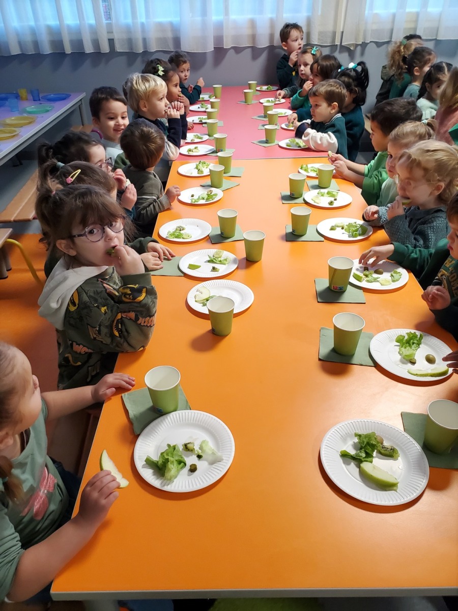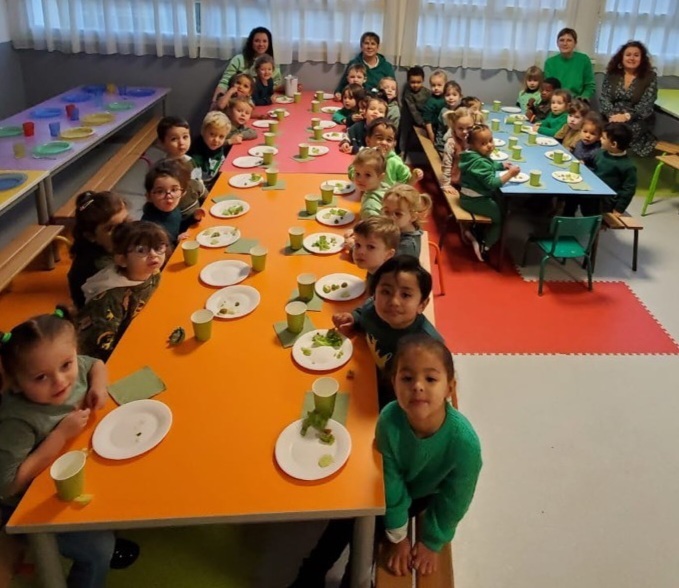 Pour fêter cette “journée couleur”, les activités réalisées en classe (arts visuels, dégustation*) étaient en lien avec notre couleur de la période : le vert
