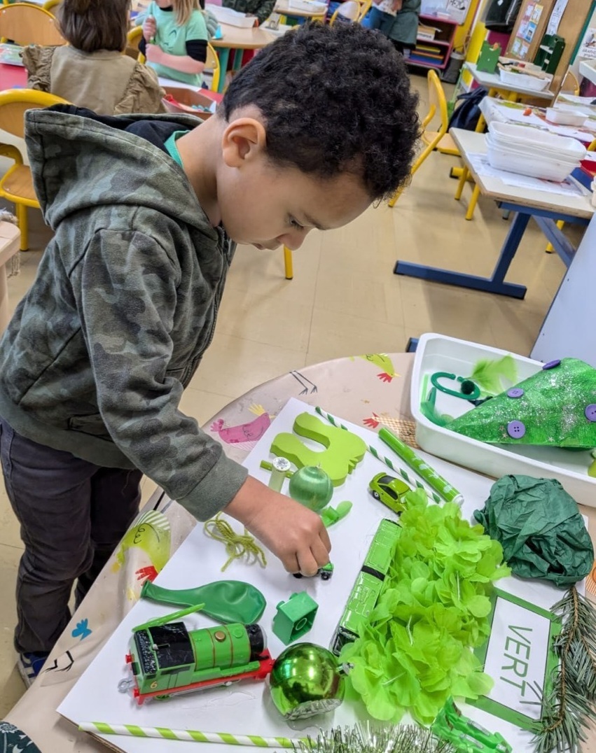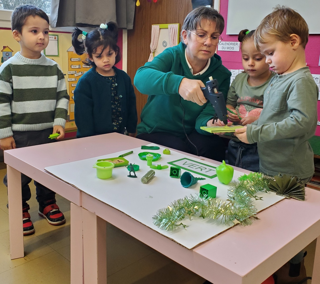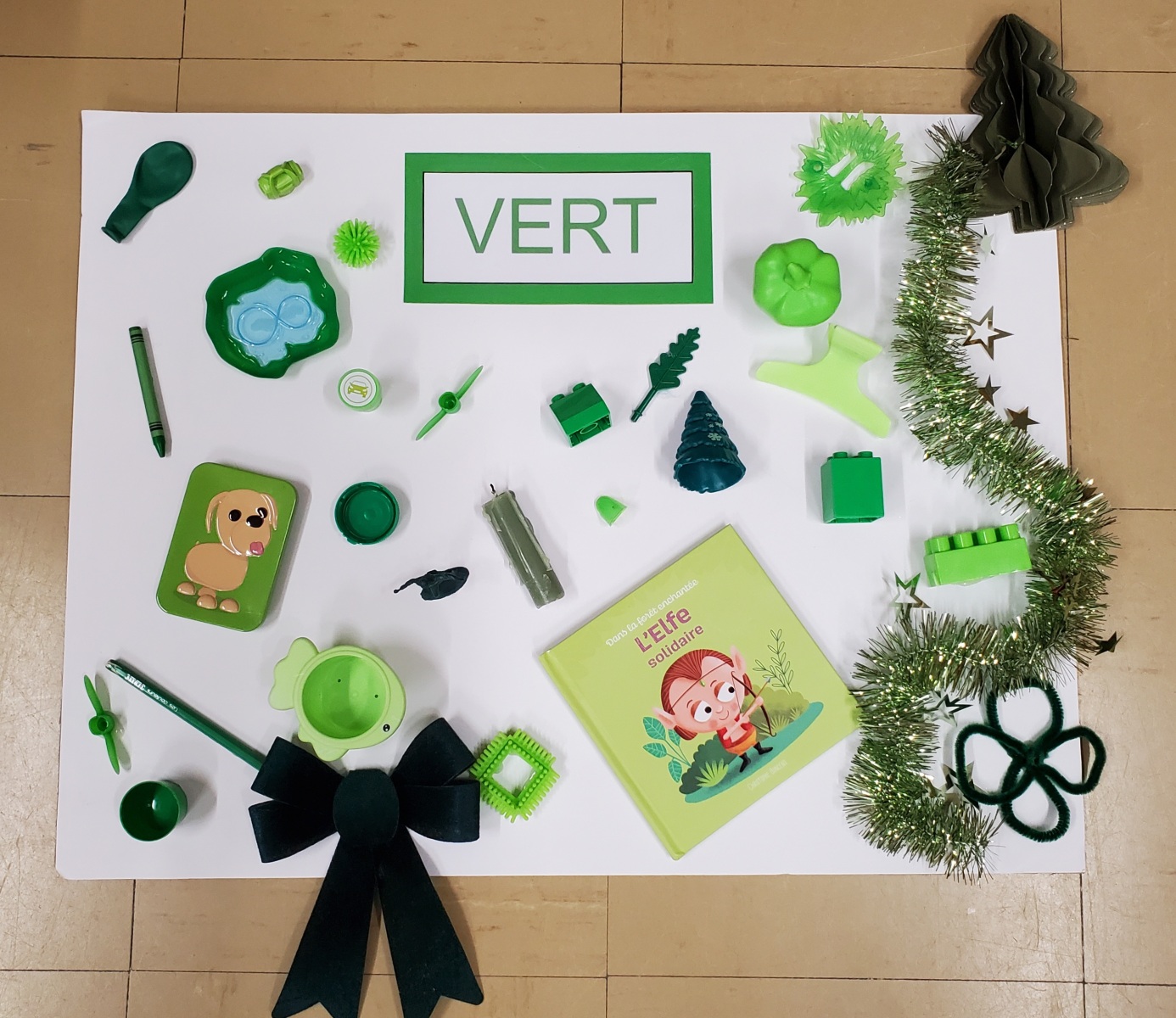 Le mardi 10 décembre, les élèves de TPS/PS de la classe de Mme Guillaume et les PS de Mme Kerisac sont arrivés habillés avec du vert.