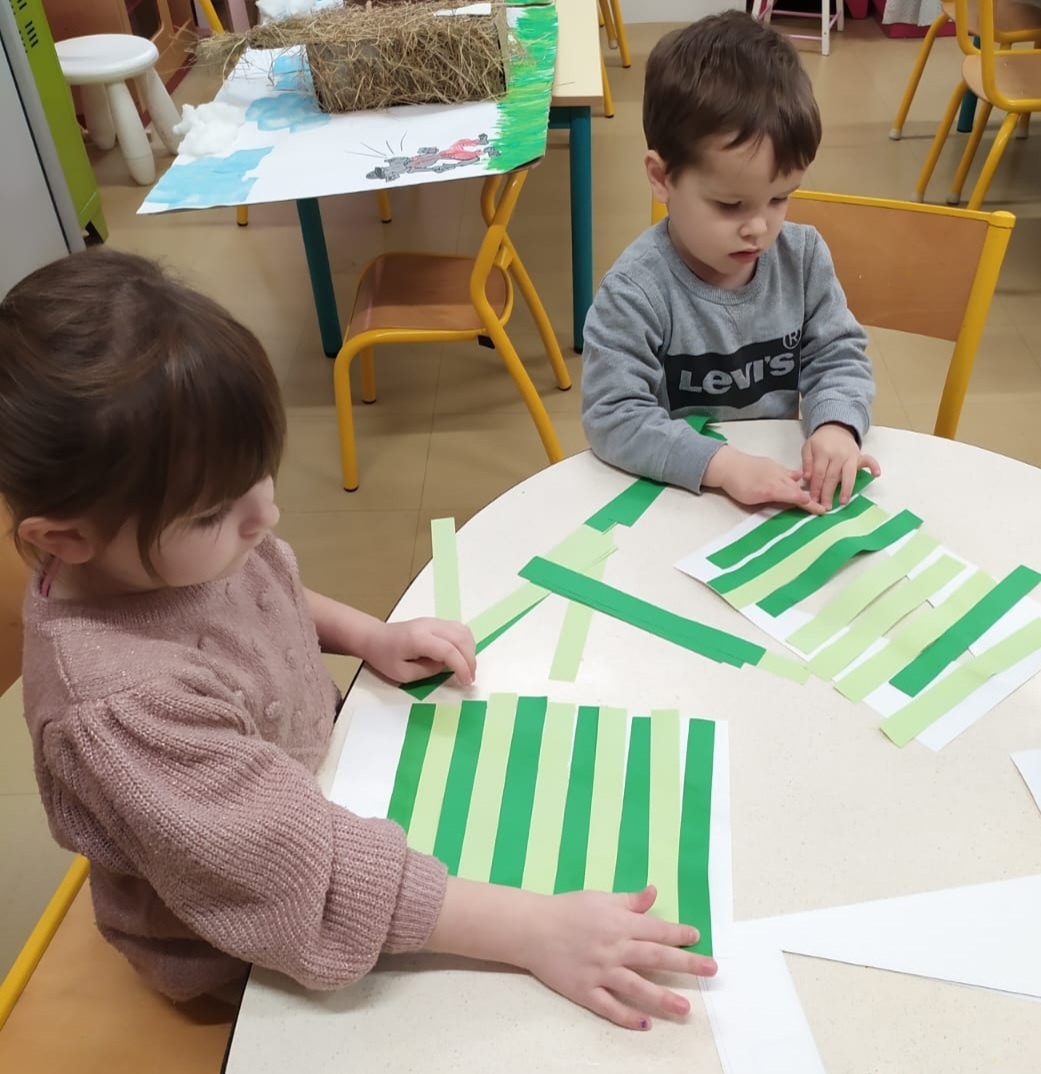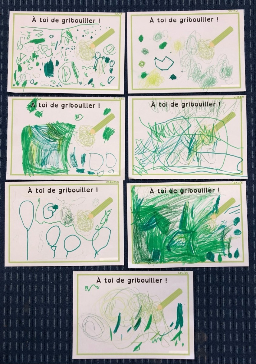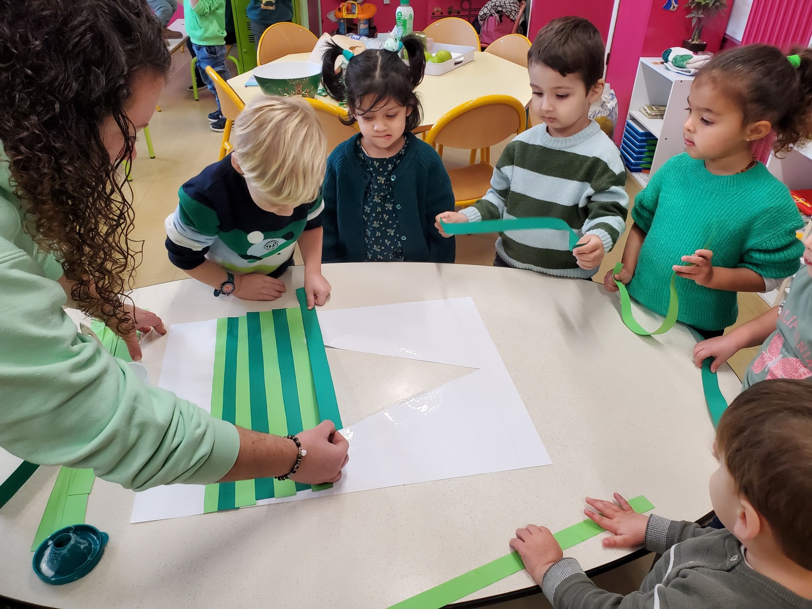 Les petits ont apporté des touches de vert à leur mosaïque de couleurs