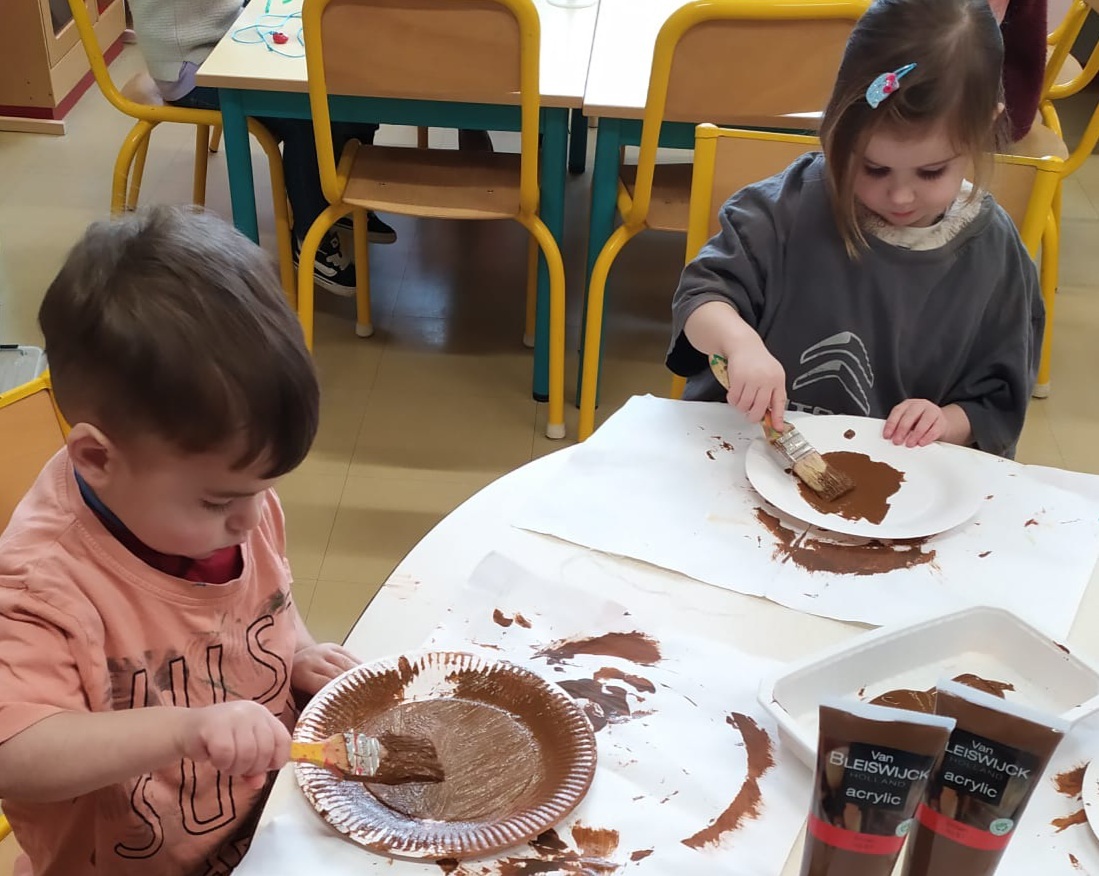 - un petit ourson à partir de 2 assiettes en carton qu’ils ont peint
