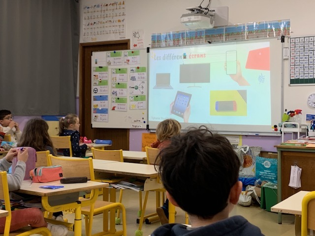 Cette semaine, les élèves de CP ont bénéficié d’une intervention de Mme Rabah, une maman d’élève, sur les dangers des écrans. Les enfants ont d’abord partagé leurs habitudes à la maison concernant l’utilisation des tablettes, téléphones et télévisions.