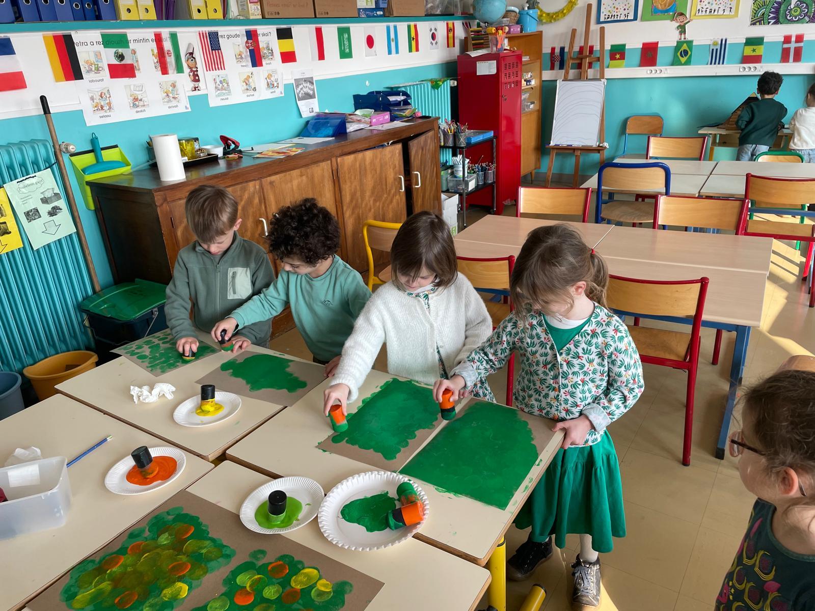 Le chant était aussi au rendez-vous ! Les élèves ont appris une chanson en anglais pour célébrer cette fête emblématique. Une belle séance de peinture aux couleurs de l’Irlande a également permis à chacun de laisser libre cours à sa créativité.