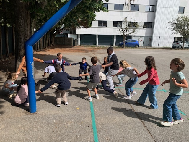 En sport, place aux jeux traditionnels de cour ! Les élèves découvrent ou se perfectionnent à la corde à sauter, à la marelle, au jeu de l’épervier, à  la “tomate”, ou encore à l’élastique. Autant d’activités qui permettent de bouger, s’amuser et coopérer.