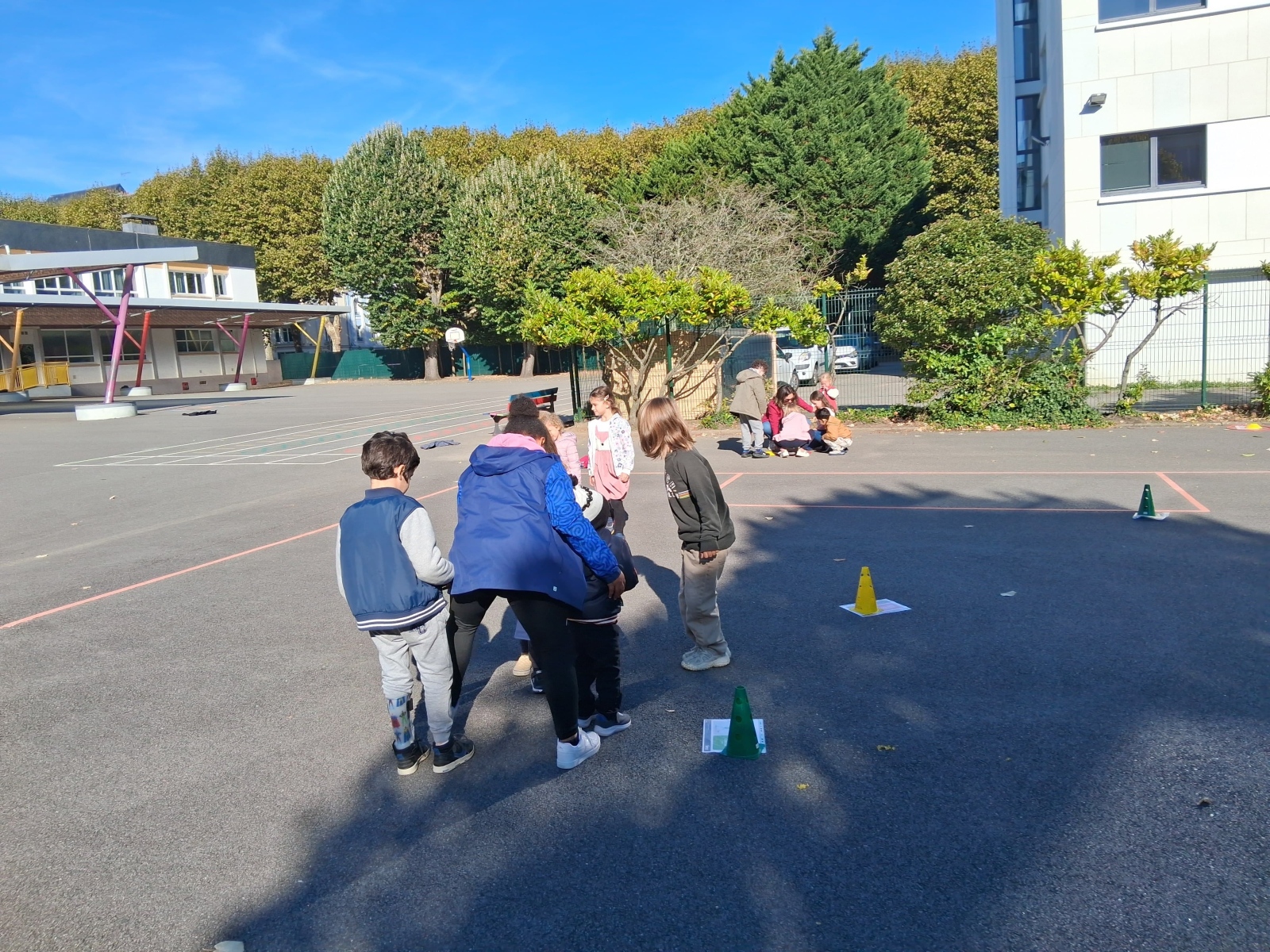 La classe de TPS/PS de Mme SOUDAN et la classe de CE1/CE2 de Mme SANS ont profité de l’action « Ma rentrée avec l’UGSEL » pour organiser leur première rencontre de parrainage.