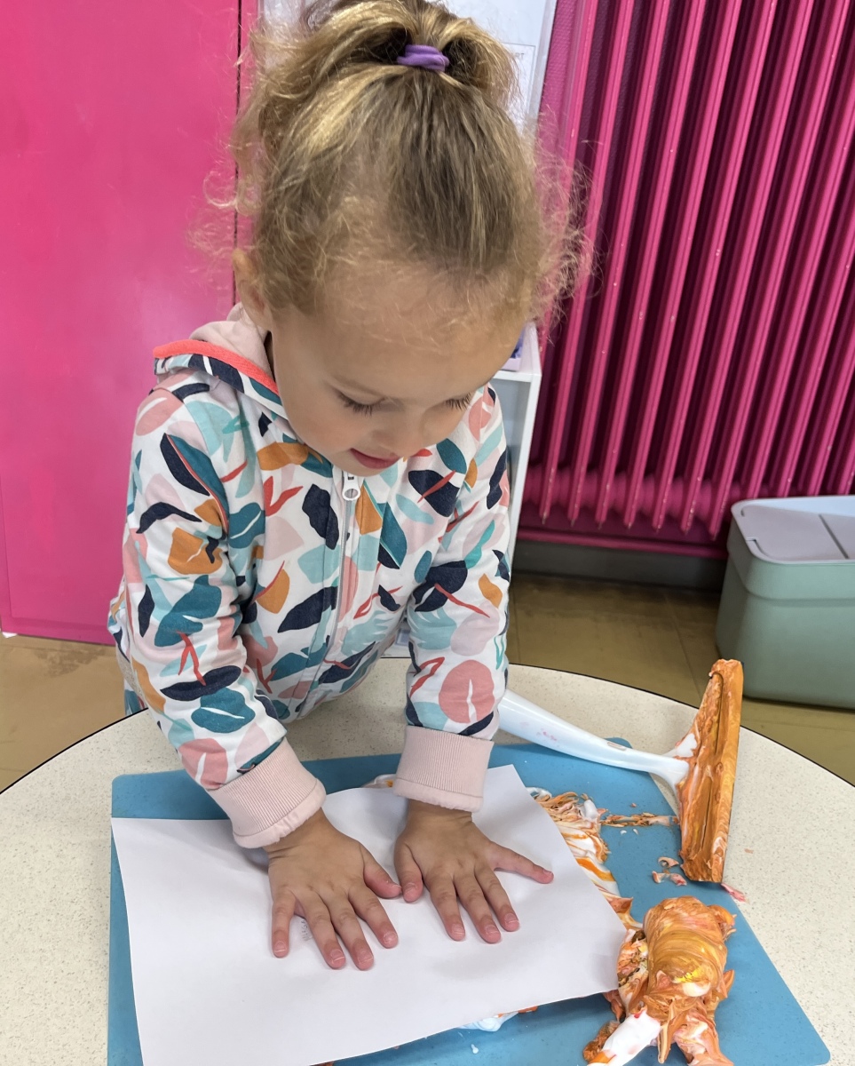 3. peindre des chapeaux de champignon et dessiner l’herbe avec leur doigt