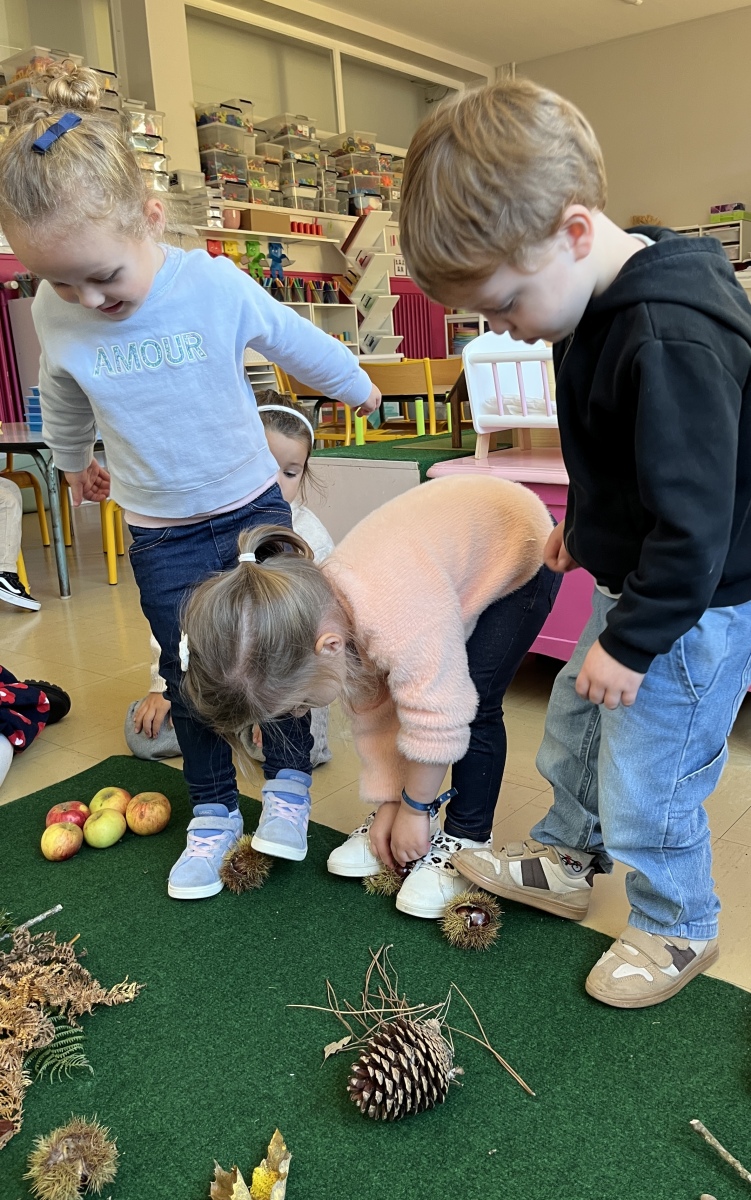 Durant cette première période, l’automne s’est invitée dans la classe de PS/MS de Mme KERISAC. Les enfants ont pu découvrir les éléments de la nature :