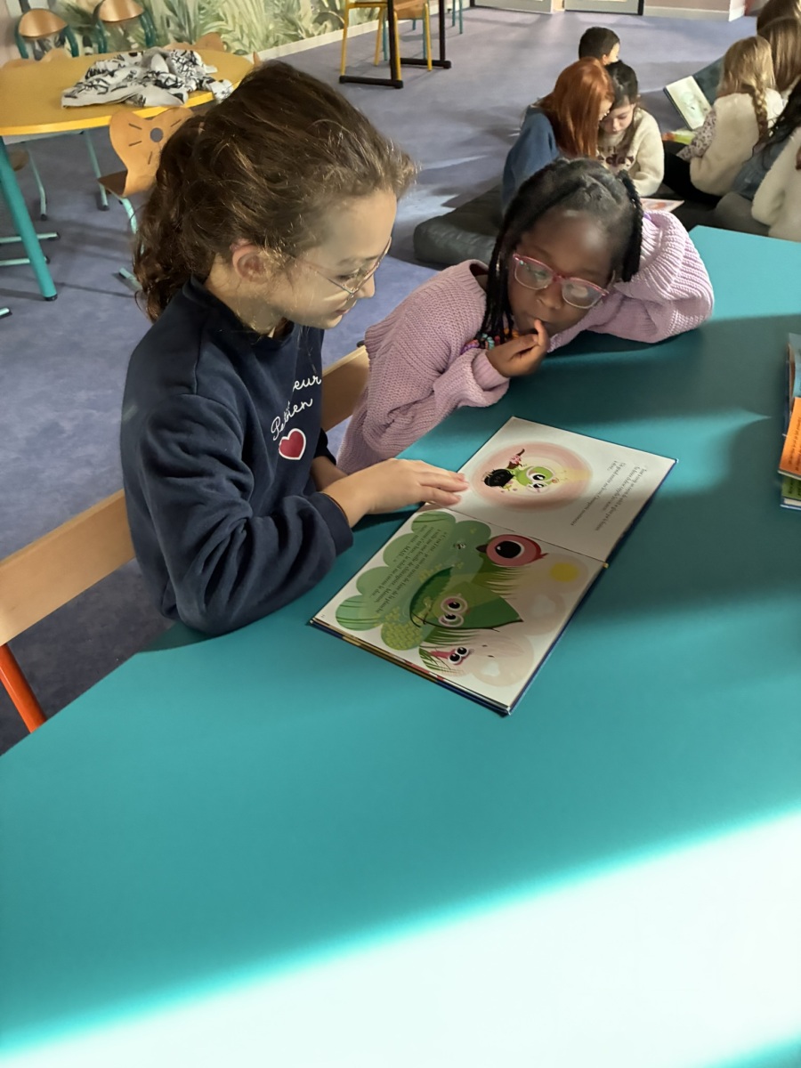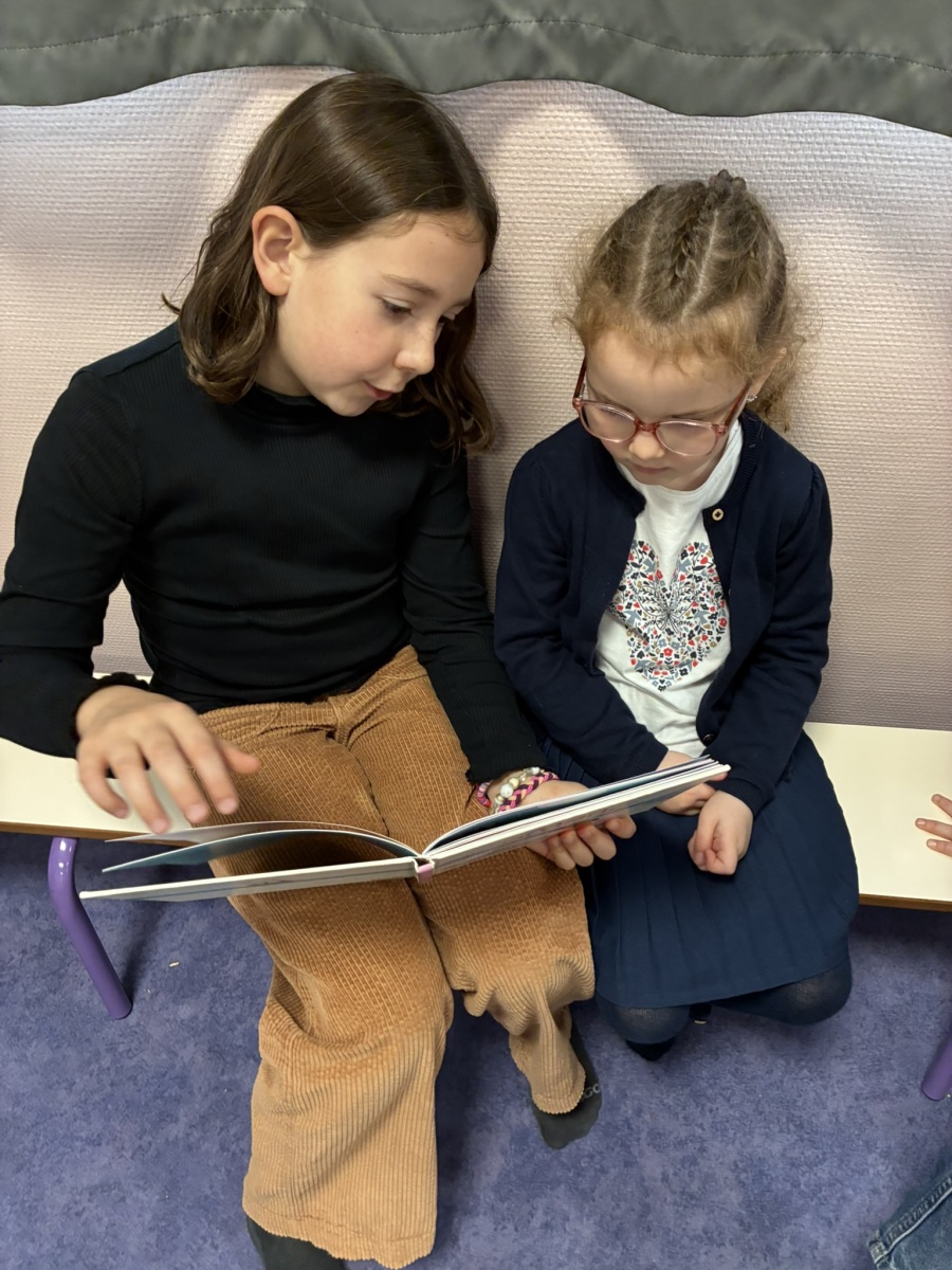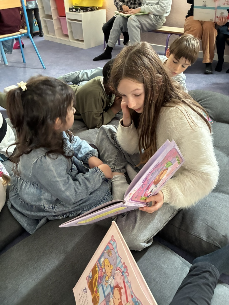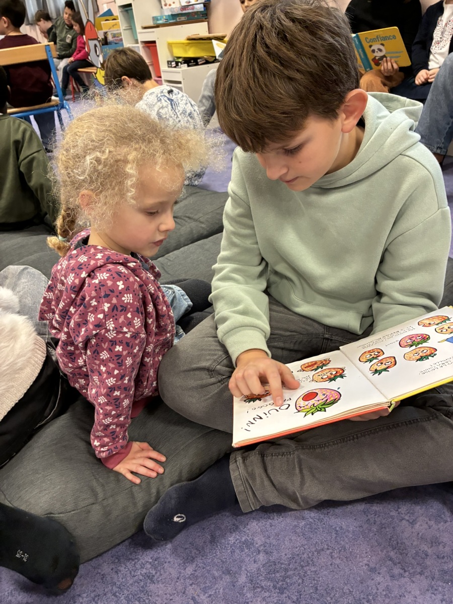 Ils ont d’abord partagé un temps de lecture avec leurs parrains et marraines de CM1-CM2 , puis la classe s’est rendue au salon du livre jeunesse .
