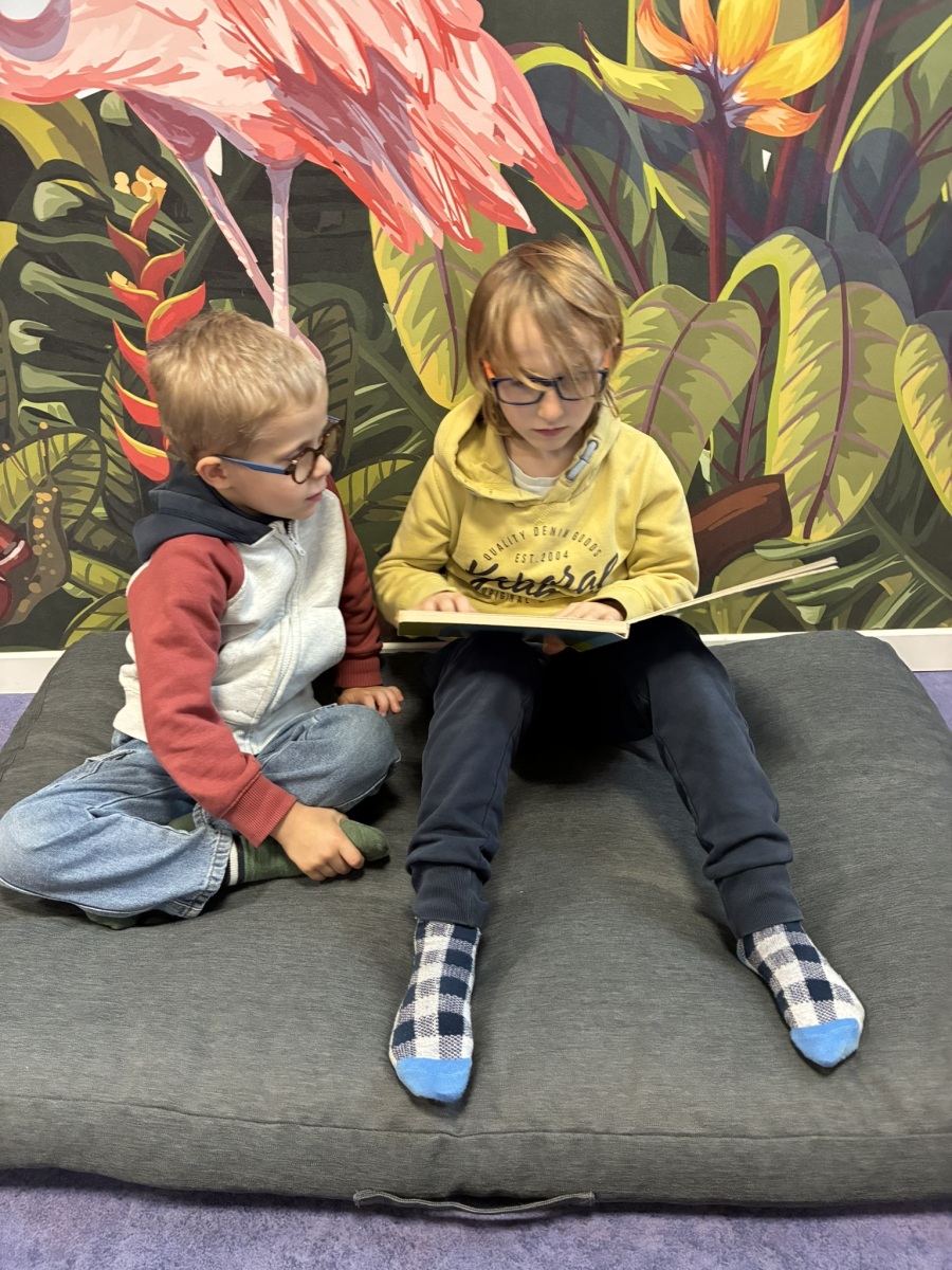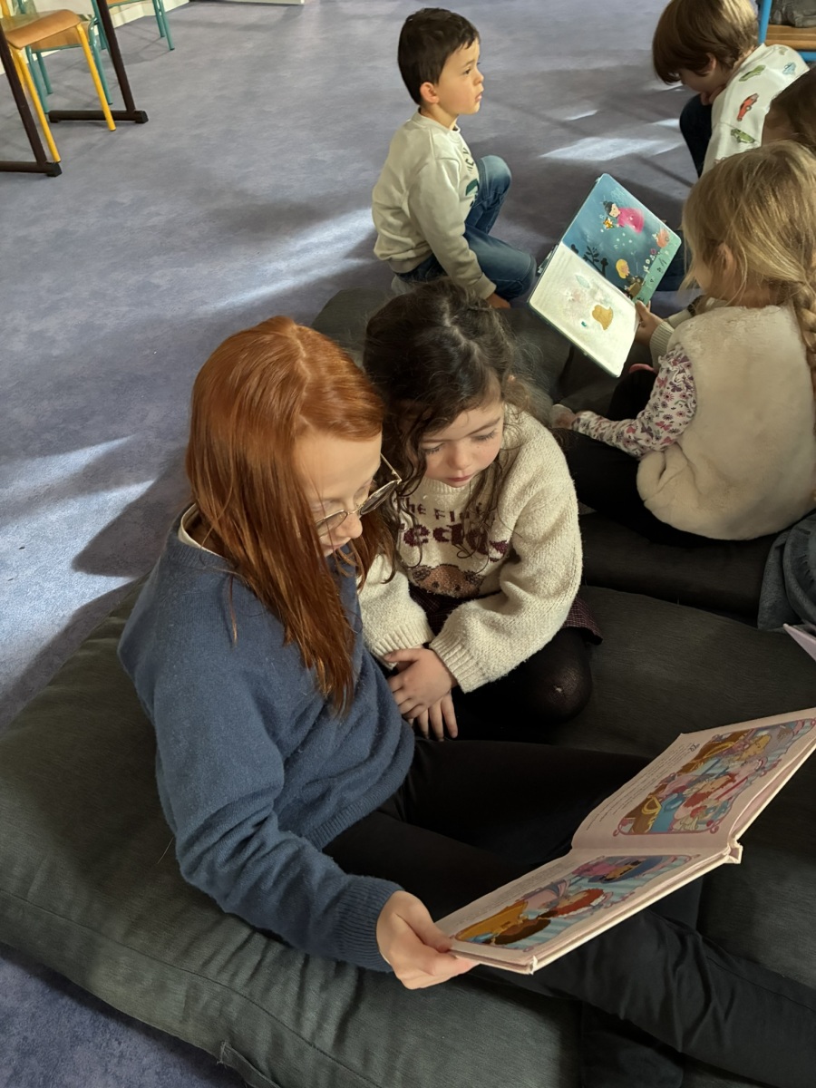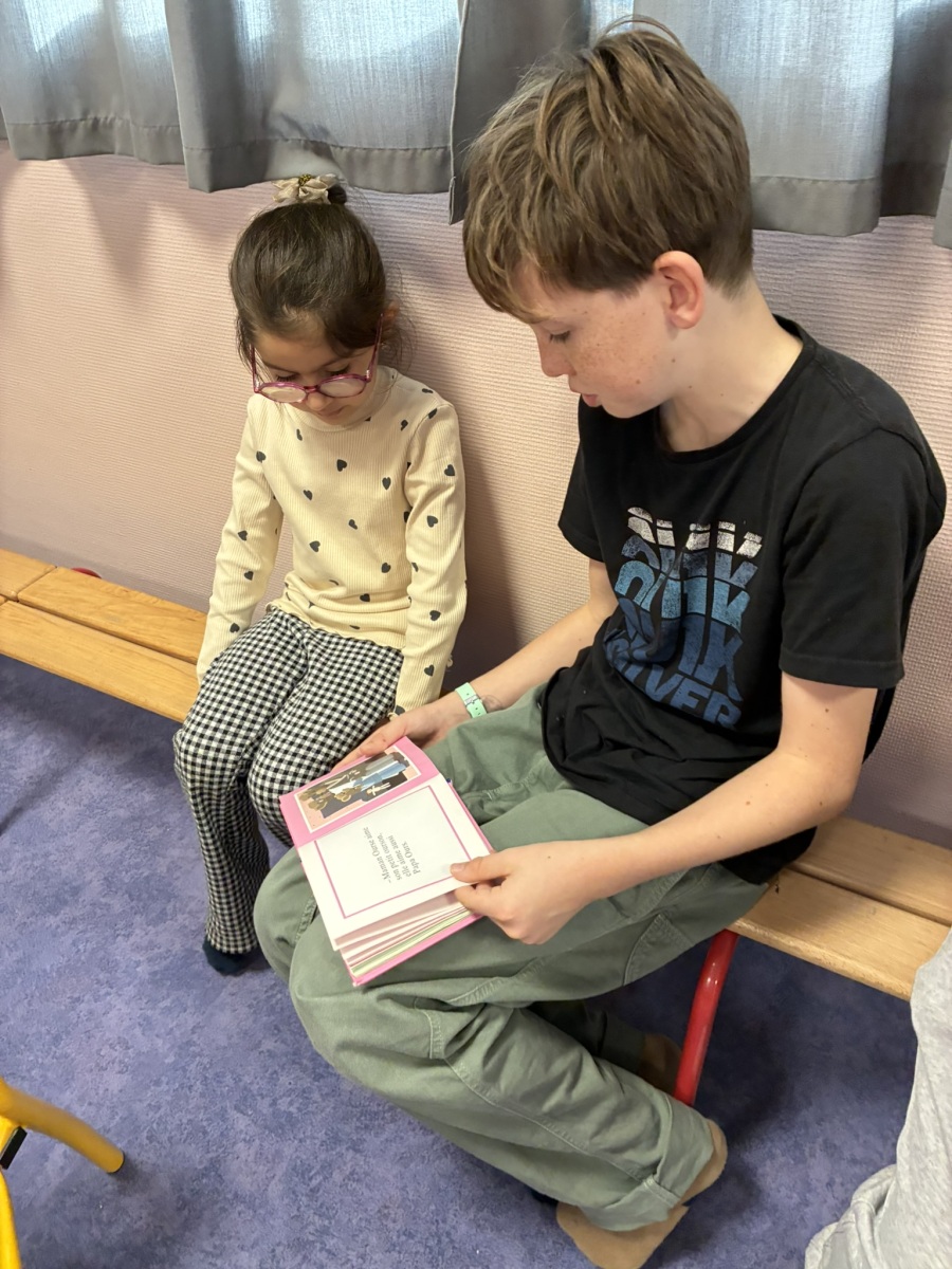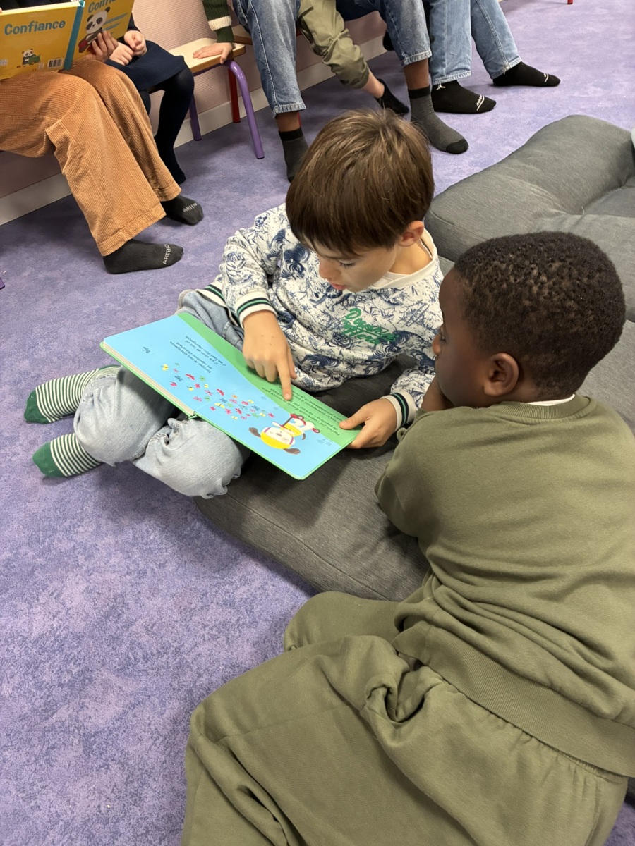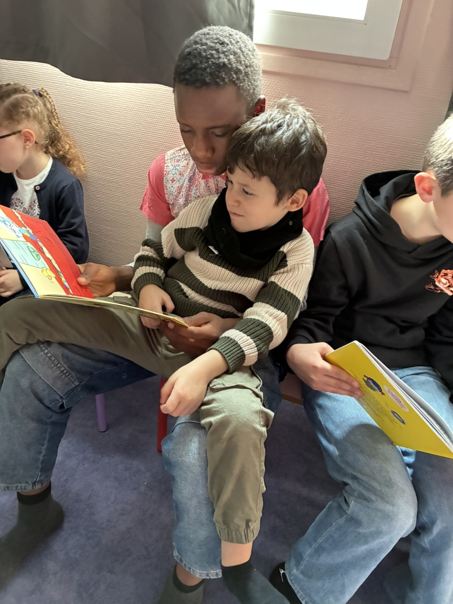 Ils ont d’abord partagé un temps de lecture avec leurs parrains et marraines de CM1-CM2 , puis la classe s’est rendue au salon du livre jeunesse .